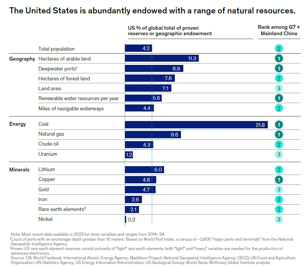 美国经济竞争力的底层根基,来自于建国初期便具备的自然禀赋,以及 250 年间持续迭代的制度体系,二者共同构成了经济长期增长的基础保障。