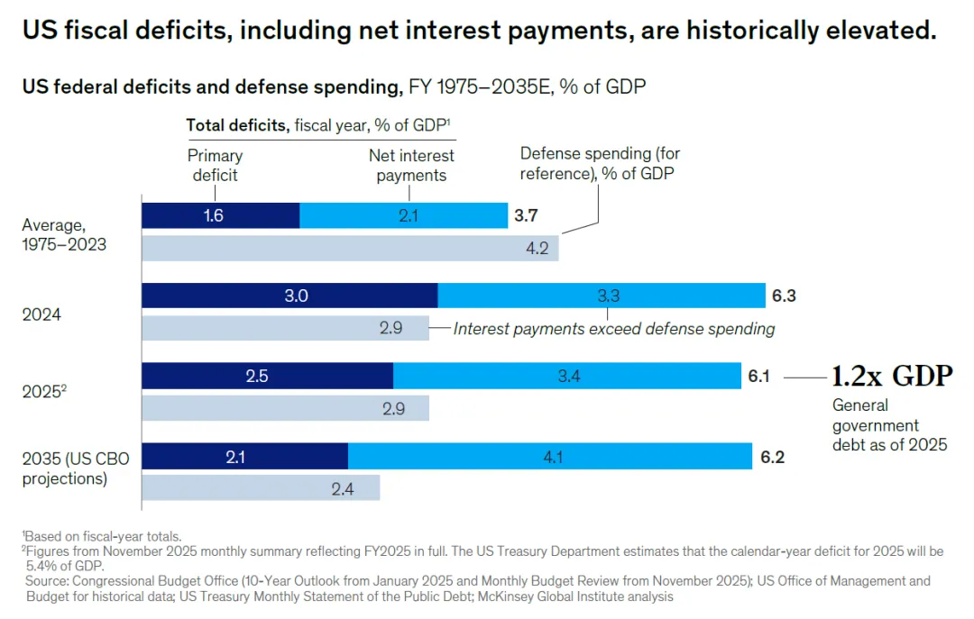 在财政层面,需要优化财政支出结构,在控制国家债务规模的同时,保障国防、科技基础设施、关键产业扶持等核心领域的投资能力,提升政府应对突发危机的财政空间。在经济安全层面,需要应对全球贸易体系碎片化的挑战,重构符合美国利益的全球经贸与供应链体系,补齐国防供应链的关键缺口,在全球地缘经济竞争中,平衡经济效率与国家安全,提升美国经济体系的长期抗风险能力与韧性。
