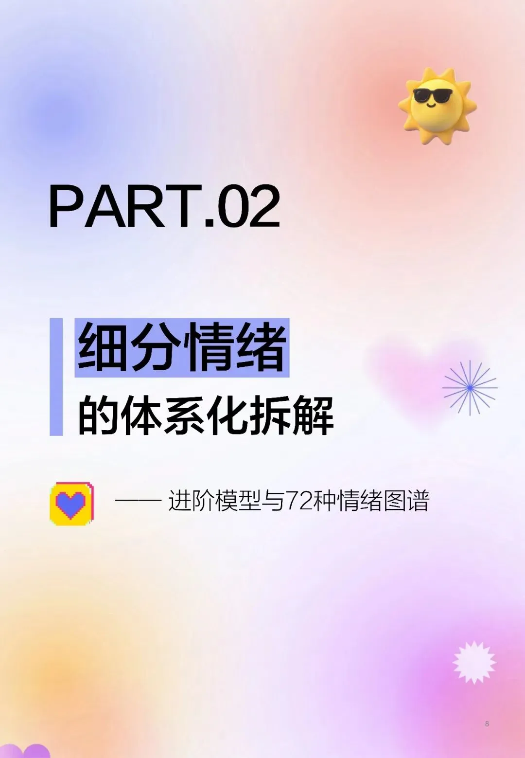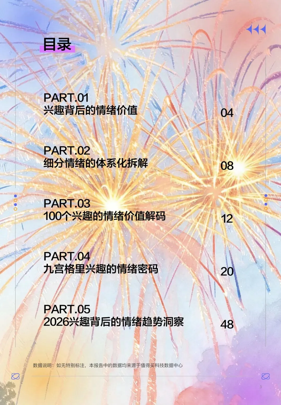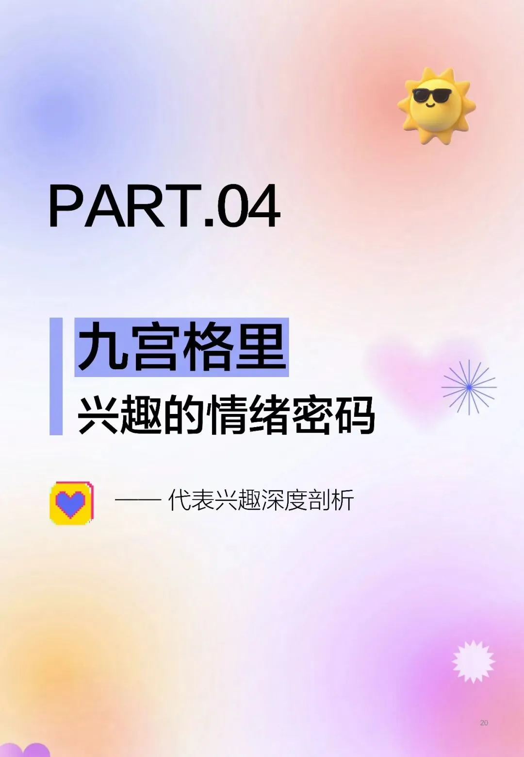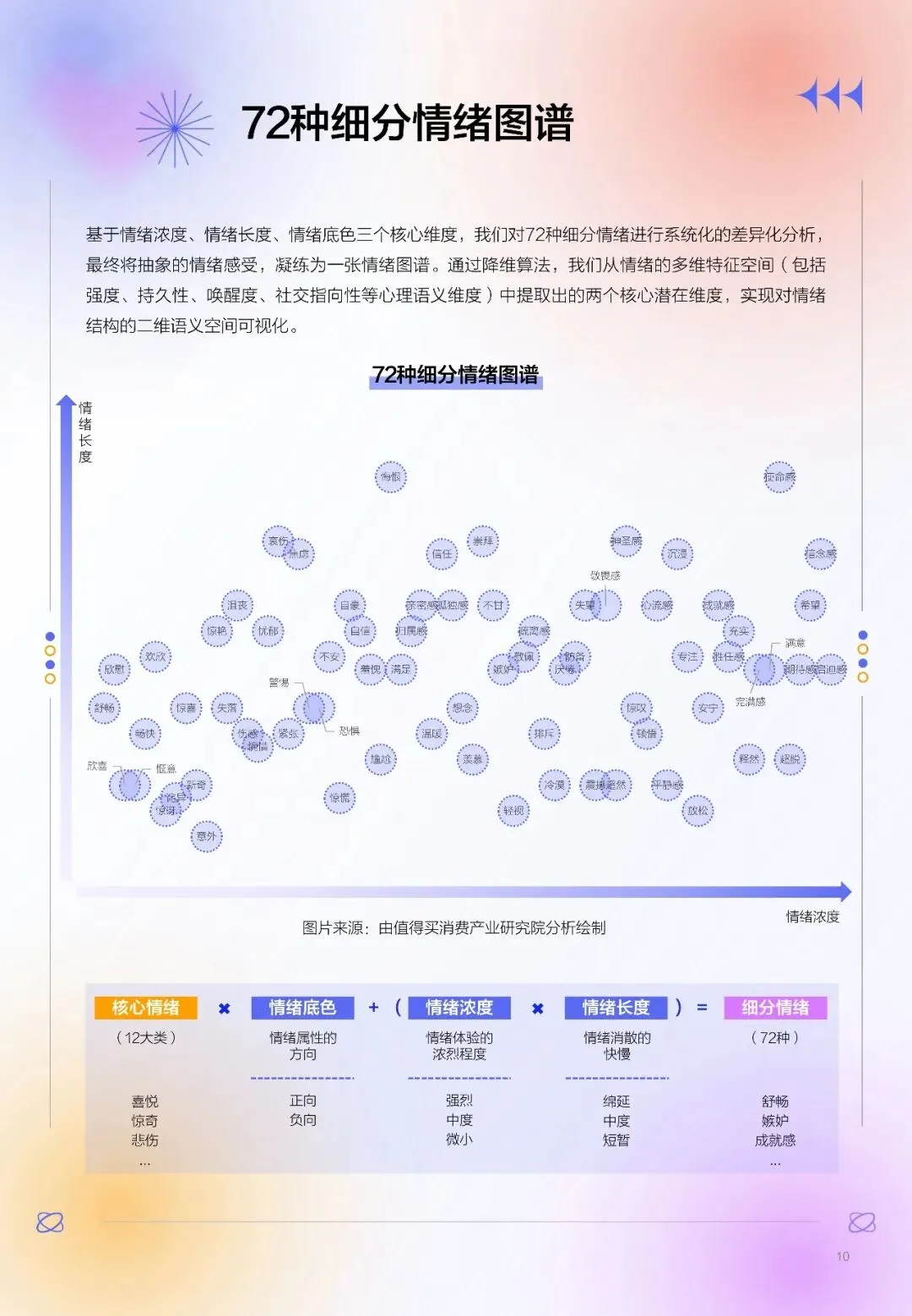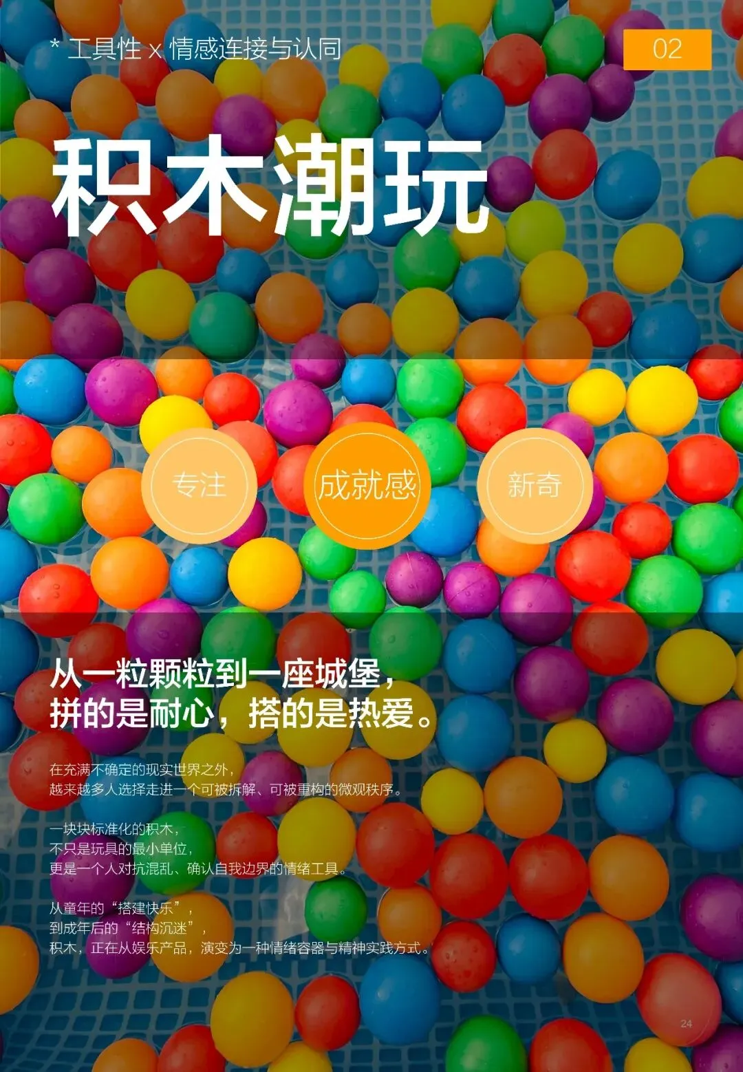 在物质丰裕时代,兴趣已成为当代人构建自我、表达身份的核心方式。兴趣消费不仅满足功能需求,更触动人心的复杂情绪,如成就感、归属感等。报告构建了情绪三层进阶模型,涵盖72种细分情绪,为兴趣消费提供情绪坐标。通过分析100个兴趣标签,揭示兴趣背后的情绪价值,如宠物营养餐带来温暖与满足,积木潮玩激发成就感与新奇感。