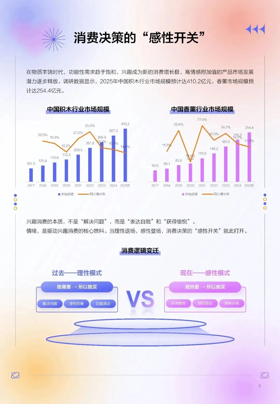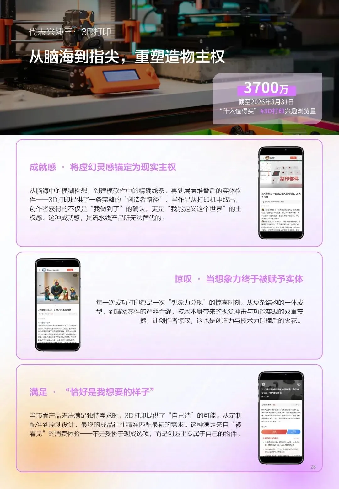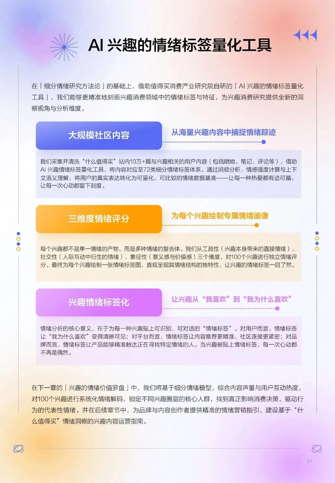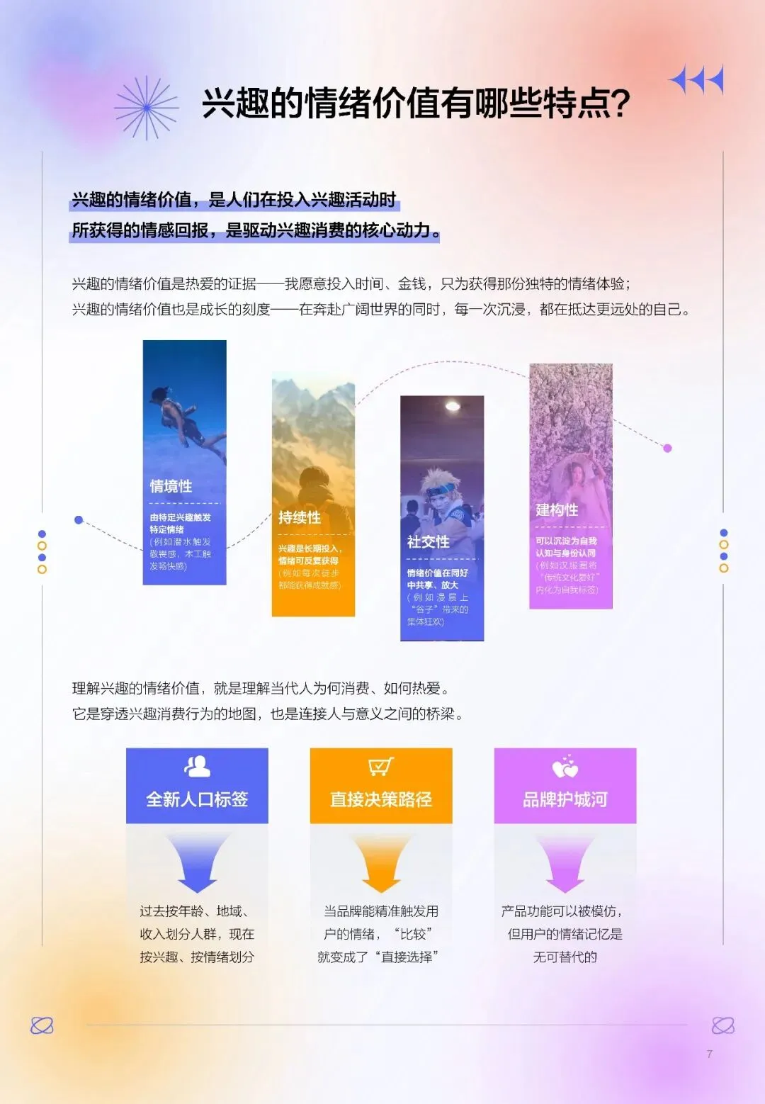 报告还指出,工具性兴趣让人通过动手创造获得掌控感,社交性兴趣在人群中确认自我,象征性兴趣则为精神寻找回响。未来,随着AI技术普及,工具性兴趣将推动造物主身份普及,社交性兴趣将拓宽陪伴边界,象征性兴趣则赋予古老热爱新生命力。整体看,兴趣消费正成为热爱的延续,情绪成为链接兴趣与消费的关键。