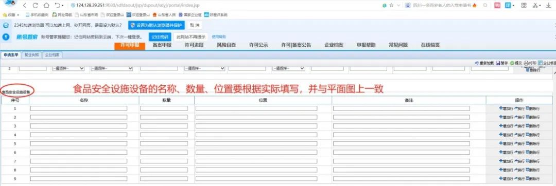 6.继续填写食品经营设施设备,如下图: