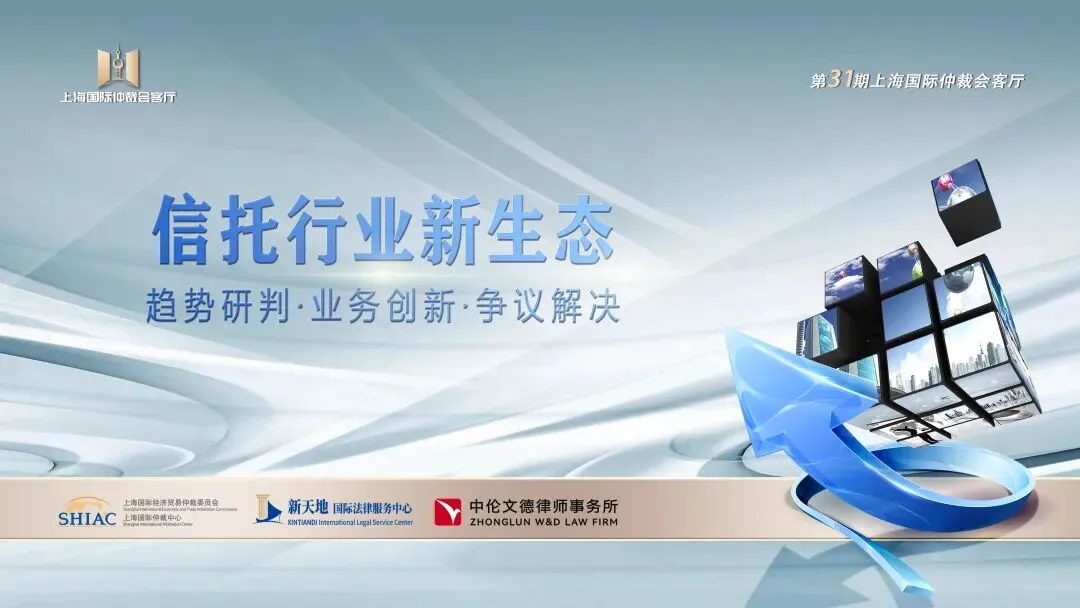 2026年4月10日,由上海国际经济贸易仲裁委员会(上海国际仲裁中心)主办,新天地国际法律服务中心、中伦文德律师事务所作为支持单位的上海国际仲裁会客厅第31期主题活动“信托行业新生态:趋势研判·业务创新·争议解决”成功举办,近150名专家学者、企业法务、商协会代表、仲裁机构代表和律师现场参会。