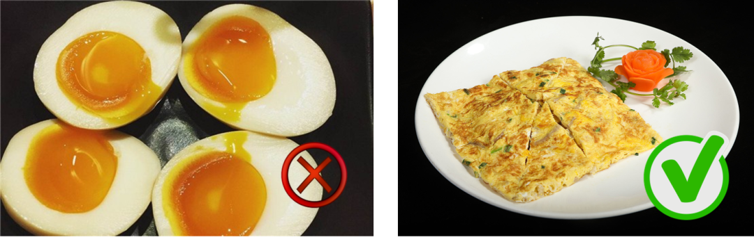 ②鸡蛋:使用鸡蛋前,应清洗干净蛋的外壳,必要时消毒外壳。烹饪时必须确保烧熟煮透。不得提供以生鸡蛋为原料且不经彻底加热处理的三文治、沙拉等食品。