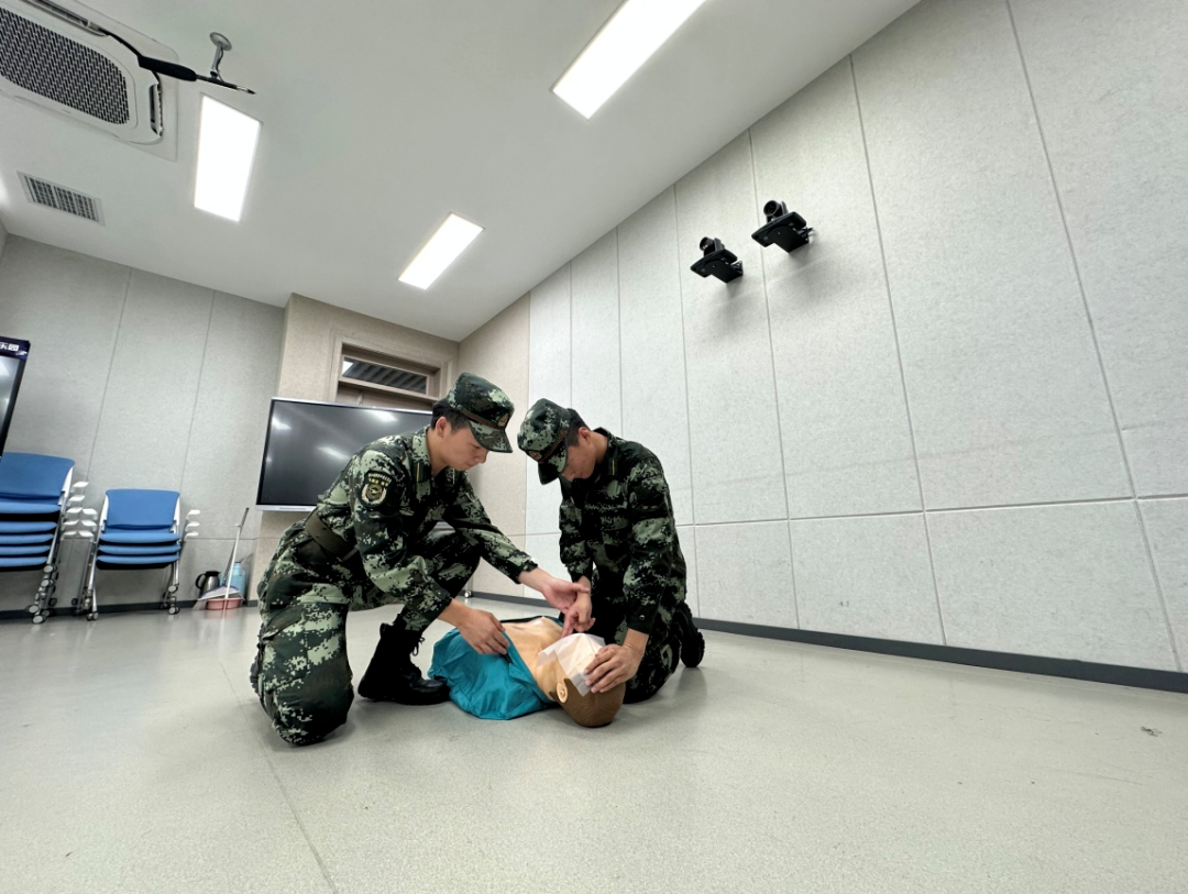 为使教学视频更加生动形象,队内的每位成员都参与了动手实践,并邀请从卫生员岗位上退役下来的退役军人现场进行指导。在录制现场,队员们认真拍摄了心肺复苏与止血包扎的急救知识微课视频,并在视频中强调应急抢救“黄金四分钟”的重要性,详细讲解了止血、海姆立克等急救理论与施救技巧。通过专业的指导和队员们的拍摄,实践队成功地将专业的急救知识和技能融入到生动的视频中,为后续青少年群体线上第二课堂工作的开展提供了有力的支持。