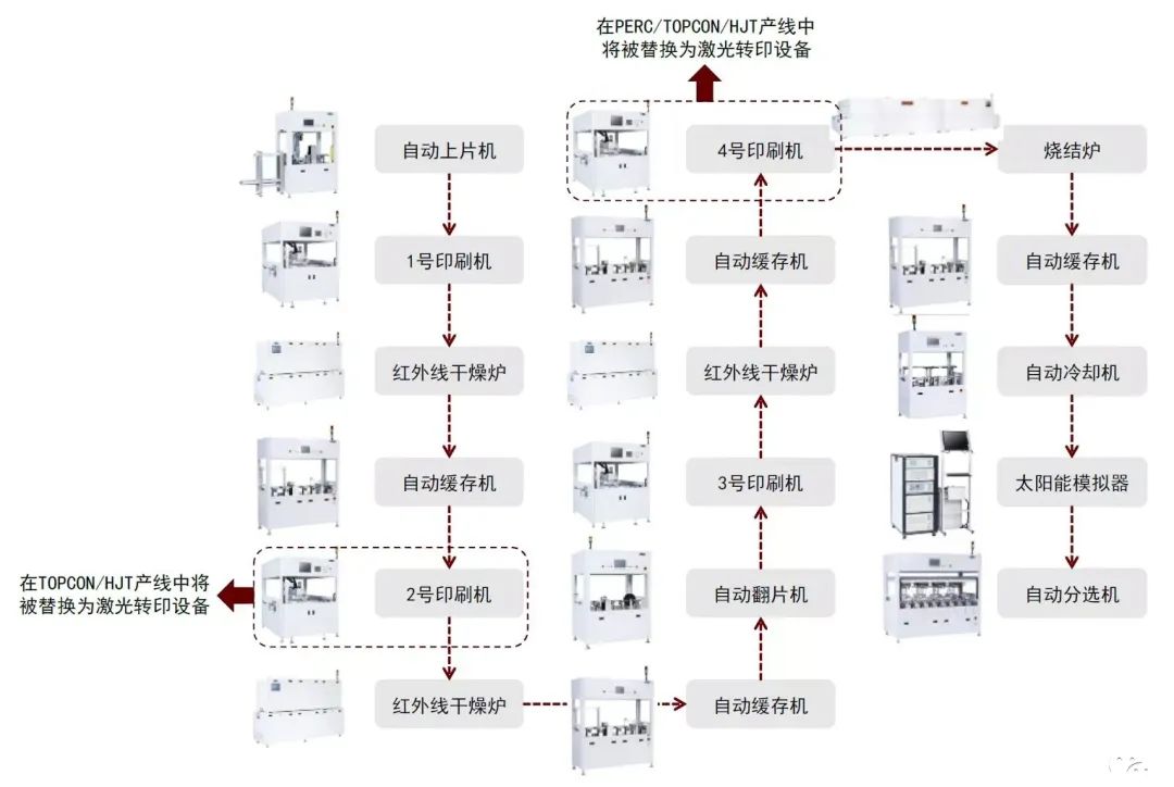 2)烧结就是把印刷到硅片上的主细栅浆料在高温下烧结成电池片,使得电极嵌入表面,形成牢固的力学接触和良好的电学连接,最终使电极和硅片本身形成欧姆接触。