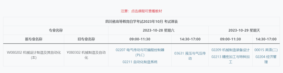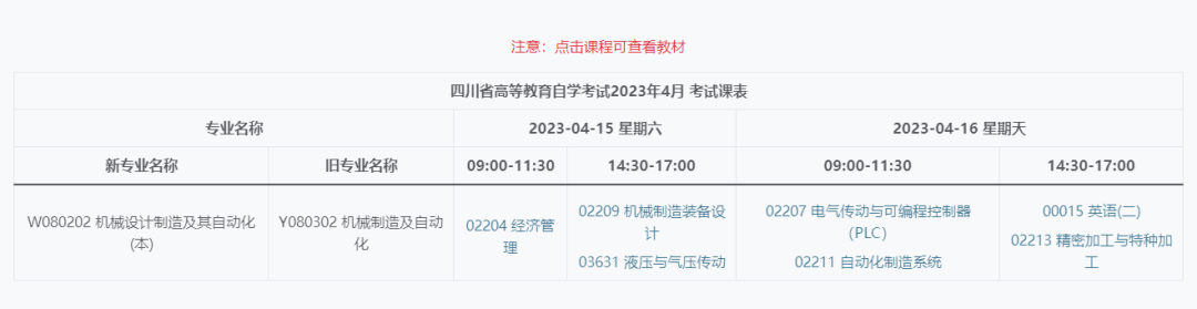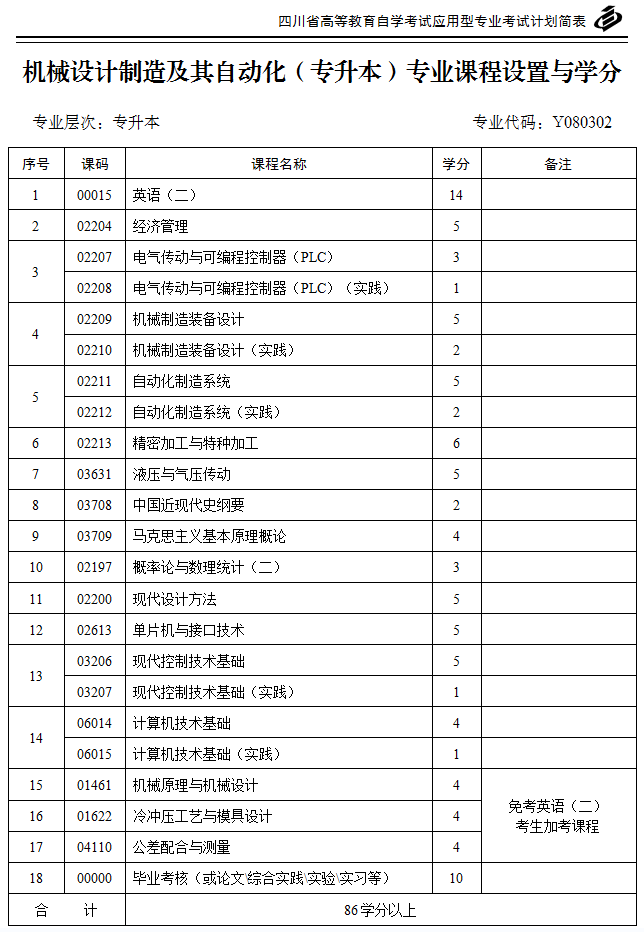 02204 经济管理、02209 机械制造装备设计、03631 液压与气压传动、02207 电气传动与可编程控制器(PLC)、02211 自动化制造系统、02213 精密加工与特种加工