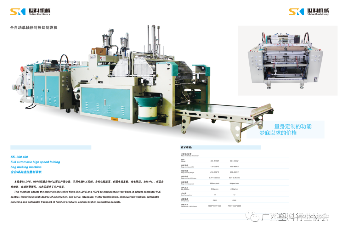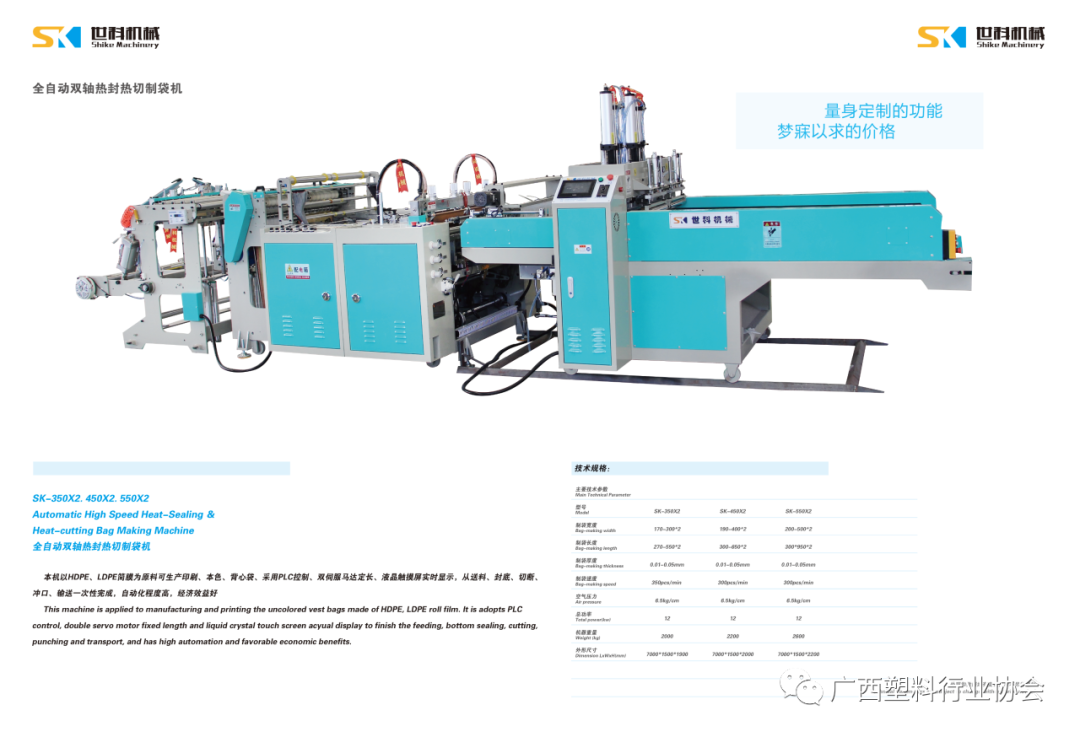 世科机械设备制造公司(原世科塑料机械厂)成立于1995年,坐落在风景秀丽的黄海之滨---日照营县。本公司以先进的制造技术创立自我品牌及行销网络,提供合乎客户使用的吹膜机,制袋机及其相关零组件等产品,同时可以提供生产链上的相关机械,比如搅拌机、印花机等,以协助客户增进其产品竞争力!秉持“德以治企,信以立世”的经营理念,以达成独立自主经营,持续稳健成长,利润分享员工的长期运营目标!