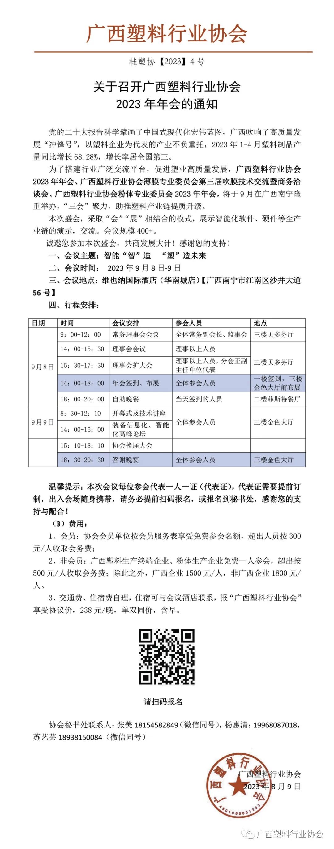广西塑料行业协会作为省级协会,自成立以来充分发挥资源汇聚优势,为塑料行业搭建越来越专业的服务平台,促进政企沟通、企业间沟通,提振行业企业发展信心,夯实行业高质量发展的基础。饮水思源,我们深知,协会所取得的每一点进步和成功都离不开广大会员的关注、信任、支持和参与。您们的理解和信任是我们进步的强大动力,您们的支持和参与是我们成长的不竭源泉。在此,特别感谢世科机械对本次盛会的大力支持,感谢会员企业多年来对协会工作的信任和支持。恭祝身体健康!阖家辛福!事业兴旺!万事如意!