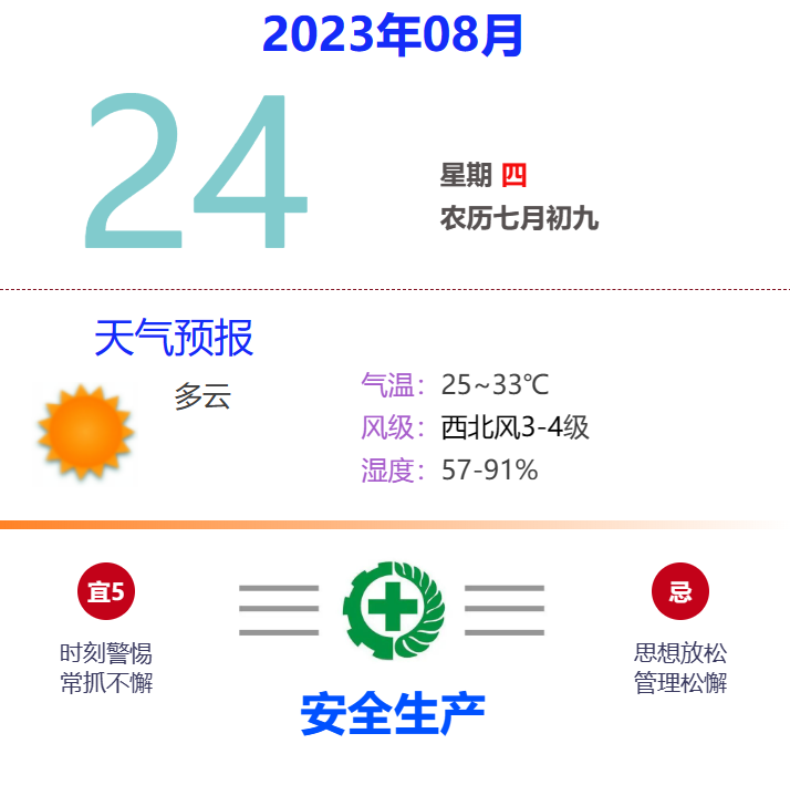 2、强化安全生产主体责任落实,要认真开展隐患排查治理工作,加强作业现场安全管理,要严格落实责任,及时发现并消除事故隐患。要经常性开展安全隐患排查,尤其是季节性极端天气,要加大排查力度,并切实做到整改措施、责任、资金、时限和预案“五到位”,及时消除隐患。