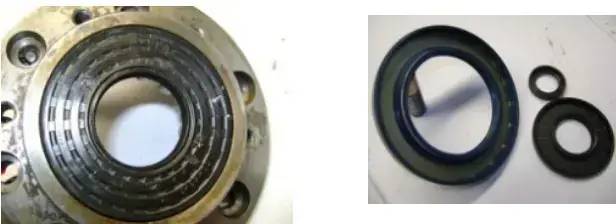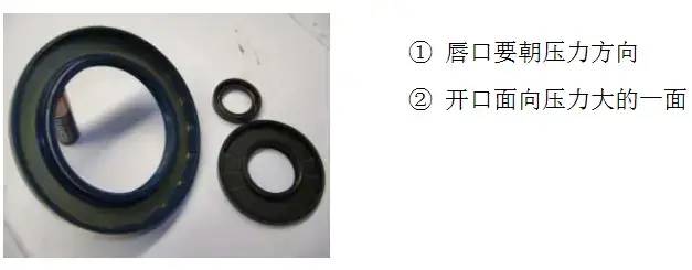 ① 旋转轴的唇形密封圈(副唇内包有骨架形,也称骨架密封