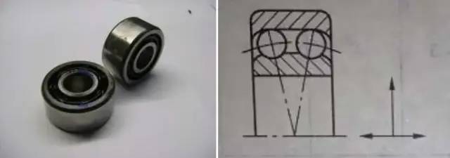 特 点:可以同时受径向载荷和轴向载荷,也可以承受纯轴向载荷,极限转速较高,该类轴承承受轴向载荷的能力由接触角决定,α越大,承受轴向载荷的能力也越大(α=15°α=25°α=40°)