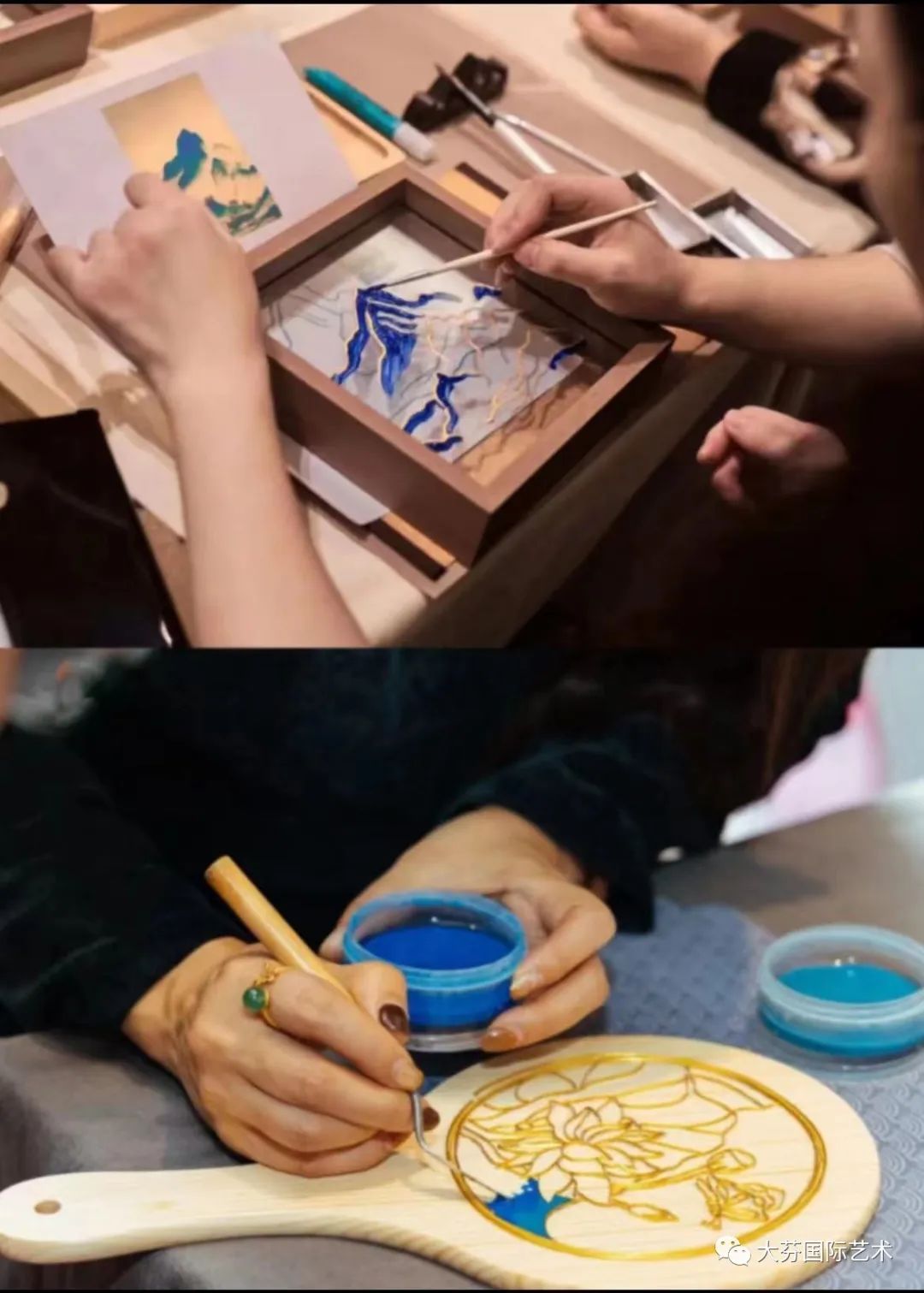 以掐丝珐琅的技艺制作手工饰品、手工艺品和绘画等