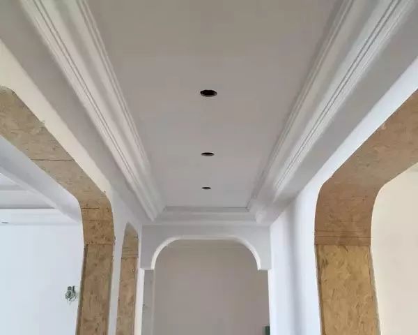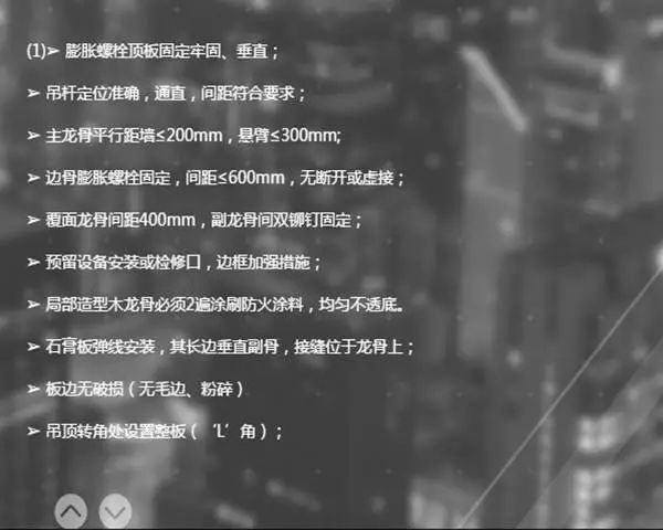 墙顶面壁纸平整、无胶痕、起鼓、开裂、卷边等现象;吊顶整板拐角处设置L角;