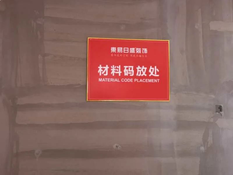 · 客户自购主材:单独码放整齐于施工便利处,使用东易日盛专用保护膜进行整体保护,同时放置标识牌,防止意外磕碰造成破损。
