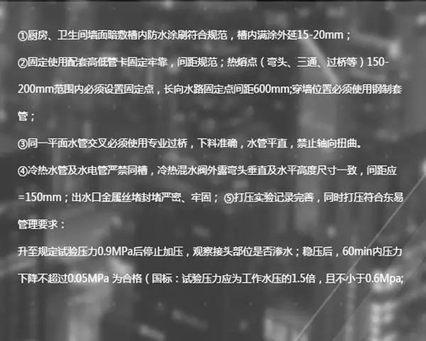 施工现场安全规范:东易日盛针对现场施工安全制定了38项规范要求,对现场临时用水用电、安全防范措施做出细致严格的规定,确保安全施工。