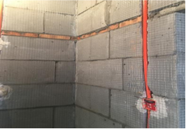 墙体交接处墙面间距500mm进行化学植筋φ6钢筋两根,端头设90°弯钩。