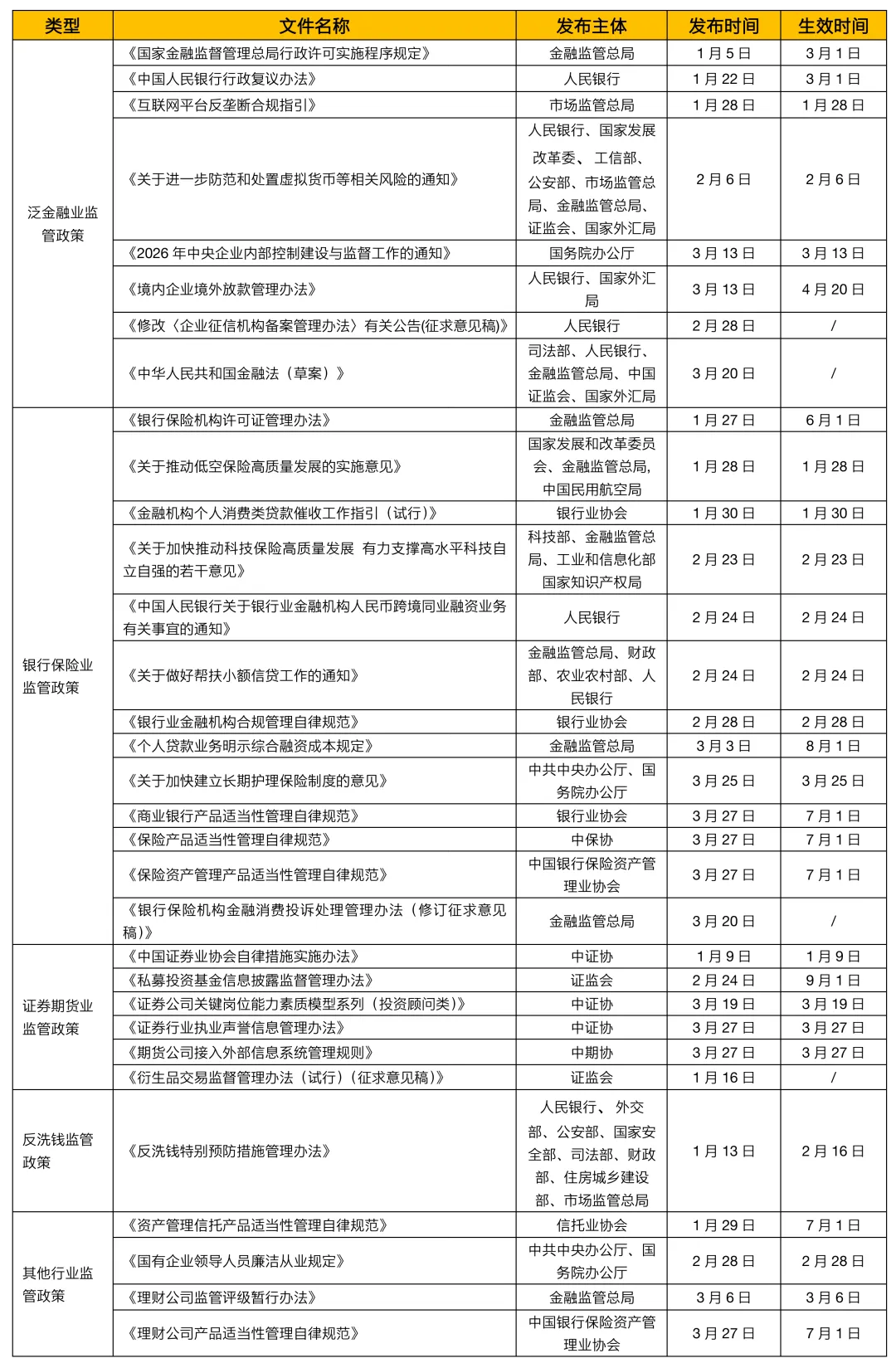 请见《2026年一季度金融行业监管政策与处罚分析》