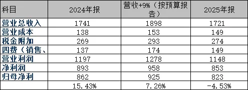 我们回头看一下,年初我们根据茅台2025年预算计算的业绩区间。现在出来的结果是823亿,明显不及预期是不可逃避的,这个答卷应该所有的股东都不会满意,股价周五大跌3%就是最好的体现。相对于年初的预算估计,直接差了100亿,这对于茅台而言是一个非常大的出入了。营收比预算下降了差不多177亿,以茅台50%的净利率而言,预计少赚88亿净利,这就是最大的原因了。而且,营业成本不降反升?卖的少卖的不好,成本还上升了?其次,四费在营收下降后不降反升,我就纳闷了,茅台真的是卖不动吗?要花那么多费用?那I茅台上的茅台咋还那么难抢呢?这中间一定有问题。茅台酒营收是比上年略增0.4%的,这里的茅台酒包括飞天茅台、非标茅台和精品茅台,不包括系列酒(茅台1935、王子、赖茅等品牌)。系列酒营收是大幅下降的,下降了10%,2024年是247亿,2025年是223亿,下降了20亿。系列酒基数小,要在去年1709亿酒营收上,增加9%,就是大概150亿。系列酒增长50%,也不过120亿,白酒行业整体不行的时刻,没有人敢押注系列酒暴增这个小概率事件。那茅台管理层做预算,也就剩下了预计茅台酒增长10%,系列酒持平或者略降。既然是茅台酒有增长指标,那是什么给了2025年初的管理层自信,可以预计增长9%的营收?我们知道,茅台想要卖更多钱,只有两条路,要么增加基酒产量,要么提价。1.提价的事情,市场上2025年初,茅台的零售价还在2500元左右因为茅台酒的工艺原因,2025年可销售的基酒大约是4年前,也就是2021年基酒产量的85%左右。我们看到2021年基酒因为扩产,是从5万吨增加到了5.6万吨,而预测可销售酒量也增加了大约0.6万吨,也就是差不多10%。正常来看,这部分的基酒应该会多产出10%的飞天茅台,那9%的业绩增长不是轻轻松松么,为什么会出现不增长的情况呢?二、非标茅台、精品茅台增产10%,想提价结果变库存配酒就是经销商要进货,飞天必须搭一部分的系列酒和其他茅台;分销则是茅台找到的客户到茅台经销商那拿货,给一部分市场价和出厂价之间的分销利润,很少。2025年第四季度营收411.5亿,相比2024年第四季度营收下降了19.35%,2025年第三季度营收398.11亿,相比2024年第三季度营收亿增长0.35%。可以确定,飞天茅台10月份酒已经完成了25年全年计划,那么增长的9%营收,在计划中,是茅台酒营收,又不是飞天,那就只能是非标茅台和精品茅台了。也就是说营收真正预算增长点,是非标茅台和精品茅台的销售额,也符合前面茅台管理层说的曲线提价的计划。也就是说2025年增量的10%基酒基本上没有变成飞天茅台,大部分也可能是全部变成了非标和精品茅台。这个从茅台酒营业成本比24年上升9.5%也可以验证,往年飞天是主力,比茅台生产成本高的只能是非标和精品茅台。比如100ML的飞天,299一瓶,5瓶等于一瓶飞天,销售价是1495,分销给经销商,给个5%的差价,等于提高了出厂价至1420元。这不比飞天赚多了吗?可是经销商就不干了啊,没有利润,肯定不推荐啊,最后批发这条路肯定卖不动啊。直营店又旱涝保收惯了,卖飞天多省事。I茅台卖的又少,去抢的人也少了,很长一段时间,小茅台在I茅台上是随时有货的。这么看,应该是在第三季度的时候就发现,非标茅台和精品茅台卖不动了。所以半年报透露了一个小道消息说年化增长下降至5%,也就是营收增长预计5%,没想到第四季度更惨。没有茅台卖了,为啥?飞天不够卖,非标卖不动,领导不可能拿着100ML的小酒请客吃饭送礼,二斤装的喝还行,送礼就不合适了,种种不便。三、非标茅台、精品茅台带崩飞天,经销商没钱周转是源头然后出现了第三、四季季度的奇葩操作,为了完成指标,压供应商拿非标和精品茅台,市场不买账,这个可是卖一瓶亏一瓶,经销商没流动资金了咋整?只能把好卖的飞天赶紧走货,毕竟飞天厂里可以再配点么,飞天还是赚钱的,用飞天补贴其他酒。然后飞天的经销商往外批价就一直掉,然后各种囤酒的黄牛和收藏者坐不住了,也往外卖,零售价也降了,恶性循环。因为经销商只要卖的比1169高他都是赚的,可是茅台大领导肯定坐不住了,这样搞不得把品牌搞砸了?赶紧自己上,说不唯指标论,没有指标,做长期品牌,10月份完成飞天持平销售额后,先不往外批条子了,稳市场价再说。第四季度换帅,反正营收已经难看了,不如再难看一点,哈哈,这个就是我们后面说的,营收下降费用还上升了----每次换届最喜欢的财务洗澡。四大费用中,管理费用下降,研发费用下降,只有销售费用是上升的。好家伙,所有类别全部上升,看起来就是很努力花钱搞营销,但是效果就是不好,这让我想起了茅台股东大会的时候,我们朋友去的茅粉节。股东大会喝蓝莓汁,茅粉节可以品尝各批次的茅台基酒,吃饭用的是茅台,各种逛博物馆、文化馆、活动、车间接待。挖掘系列酒经销商、客户活动比股东大会待遇好多了。应该就是这么花出去的了。接下来,我们对比一下第四季度和全年的营业利润,发现不对劲了:2025年的营业利润率从第三季度的67%掉到了61.5%,主要是销售费用从56.39亿到72.53亿。好奇心驱使下,去计算了一下2024年和2025年的每季度销售费用:一看,2025年第四季度销售费用大约虚增了12亿,这是把春节的费用也提前计提了,还是干啥了?符合 “财务洗澡” 的经典特征:上市公司通过盈余管理,在业绩不佳年份一次性多计费用或损失,降低未来业绩基数,为后续利润释放预留空间的行为。
