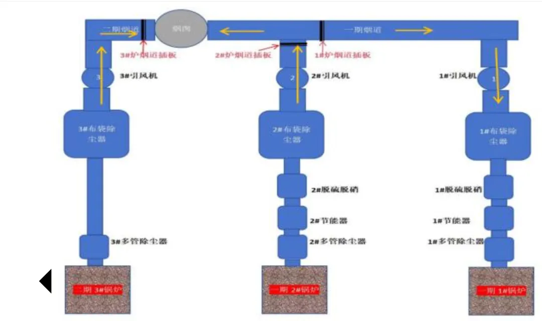 2026年1月20日,xx能源公司3#锅炉处于正常运行状态,1#锅炉和2#锅炉因前期进行重大修理及低氮改造而停炉。早上7时许,公司启动2#锅炉进行试运行;因2#锅炉环保监测数据超标,上午公司又决定启用1#锅炉。11时许,1#、2#和3#锅炉的引风机持续运行,而1#、2#锅炉的烟道属于串联安装,炉膛内的烟风经过各自烟道插板与总烟道连接,最终通向烟囱(图3)。11时39分许,罗某强将1#锅炉引风机关闭,导致风力不均衡,此时三台锅炉的烟道插板又都处于开启状态,烟道相通,2#和3#锅炉产生的烟气一部分通过共用烟囱排向大气环境中,另一部分则经烟道反向流入1#锅炉炉膛(图3 烟气流向图)。受此影响,烟气在1#锅炉炉膛内积聚,炉膛内氧浓度急剧下降(图4),形成有毒有害气体及缺氧的环境。同时,烟气从炉膛炉门口向外排出。