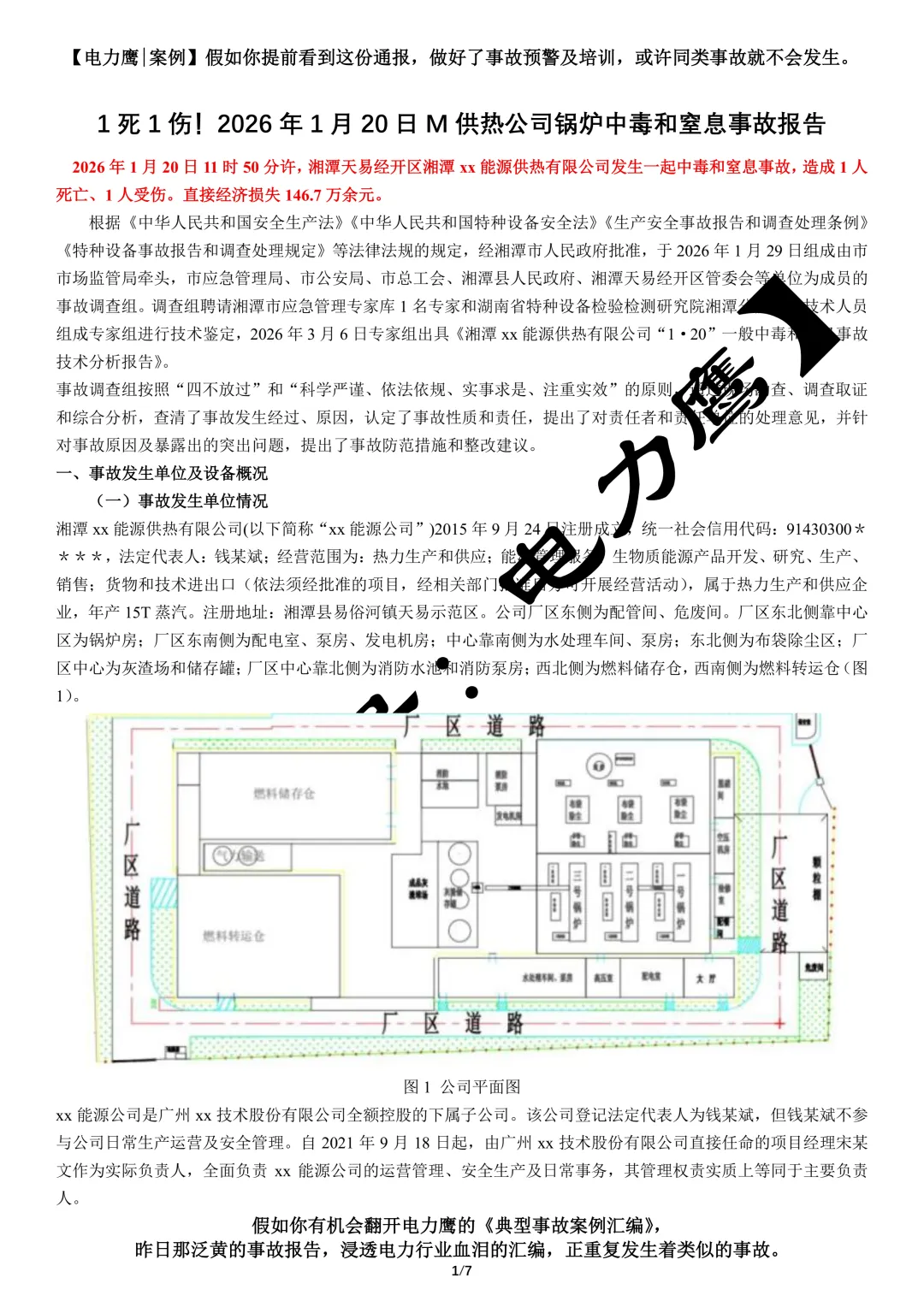 【电力鹰|案例】2026年1月20日11时50分许,湘潭天易经开区湘潭xx能源供热有限公司发生一起中毒和窒息事故,造成1人死亡、1人受伤。直接经济损失146.7万余元。