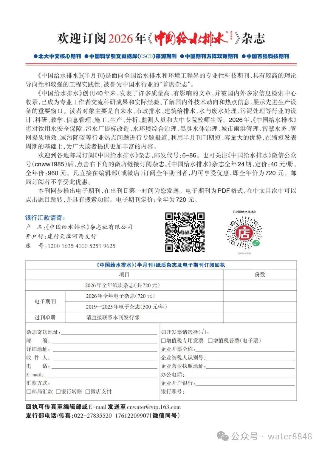 收款单位:《中国给水排水》杂志社有限公司