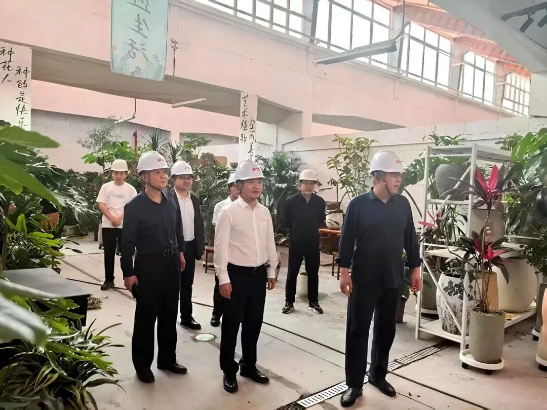 调研中,肖江民、熊时泰不时向区长杨育星汇报江纺花卉综合大市场建设工期、规划布局、招商业态等情况,杨育星区长也深入市场各个角落,仔细查看市场规划布局。他对江纺将工业遗存与花卉产业有机融合的创新做法表示肯定,认为这一模式既赋予了老旧厂房新的生机与活力,又为城市更新、产业升级、资产盘活探索出了一条可行之路。