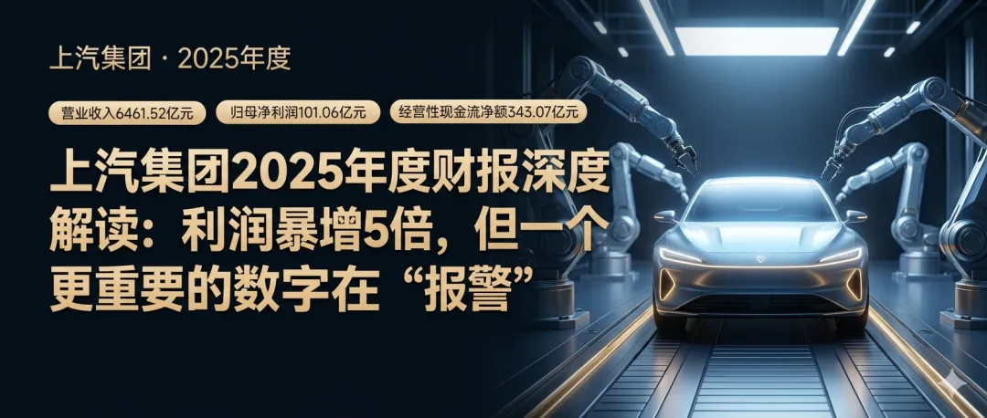 日赚近3000万,这是上汽集团2025年交出的成绩单。当一家年营收超过6460亿的巨无霸,归母净利润同比暴增506%时,市场理应沸腾。然而,翻开这份近万亿资产的财报,我们看到的却是一个极其复杂的叙事:一边是利润表的“V型反转”,扣非净利润从巨亏54亿扭转为盈利74亿;另一边,资产负债表上,一个关键科目的增速却远超营收,像一颗滴答作响的定时炸弹。这家中国汽车工业的“长子”,究竟是走出了泥潭,还是仅仅在暴风雨中短暂地喘了口气?今天,我们就来拆解这份冰火两重天的财报,看看数字背后,上汽正在经历一场怎样艰难的转型。