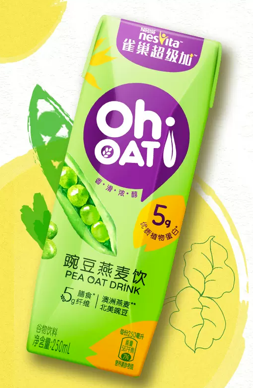 日前,“雀巢超级加”系列新产品——豌豆燕麦饮植物蛋白饮品已在雀巢天猫旗舰店上线,这也是雀巢中国首次推出豌豆燕麦奶。据悉,新品甄选植物力量,主打“燕麦+豌豆”双重植物蛋白,每瓶产品含有5克蛋白质、5克膳食纤维。