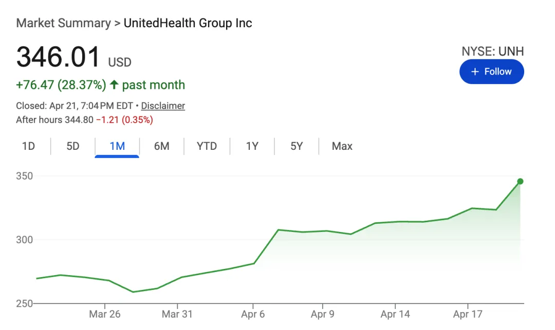 今年年初的时候我去弗罗里达找前老板叙旧,领走前他问我最看好的公司是啥,我当时就说UNH。那会股价已经因为黑天鹅跌下来了,而我去年就给他分享过UNH的机会,他当时因为政策不确定性没买。后来也确实如他所担心的一样,股价年初又暴跌走了个双底。