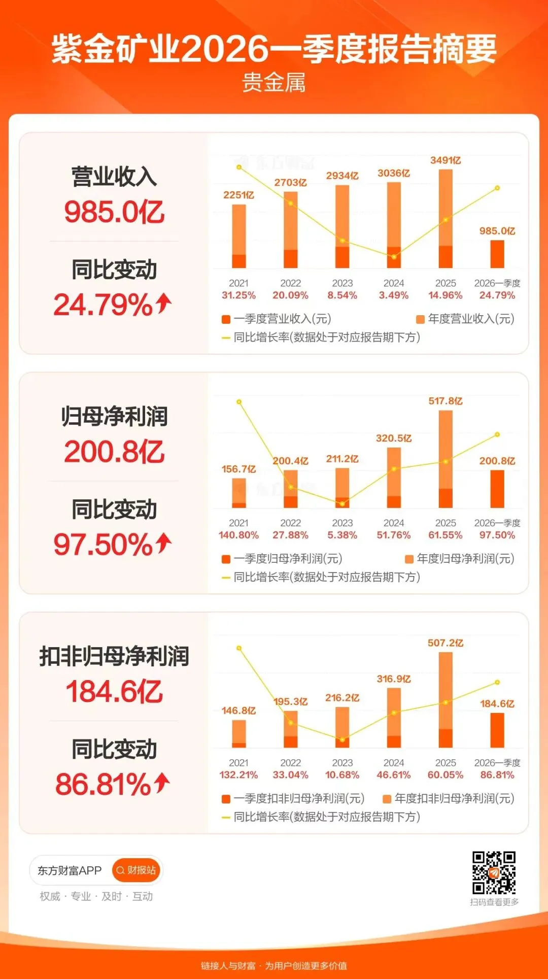 紫金矿业2026年Q1业绩截图: