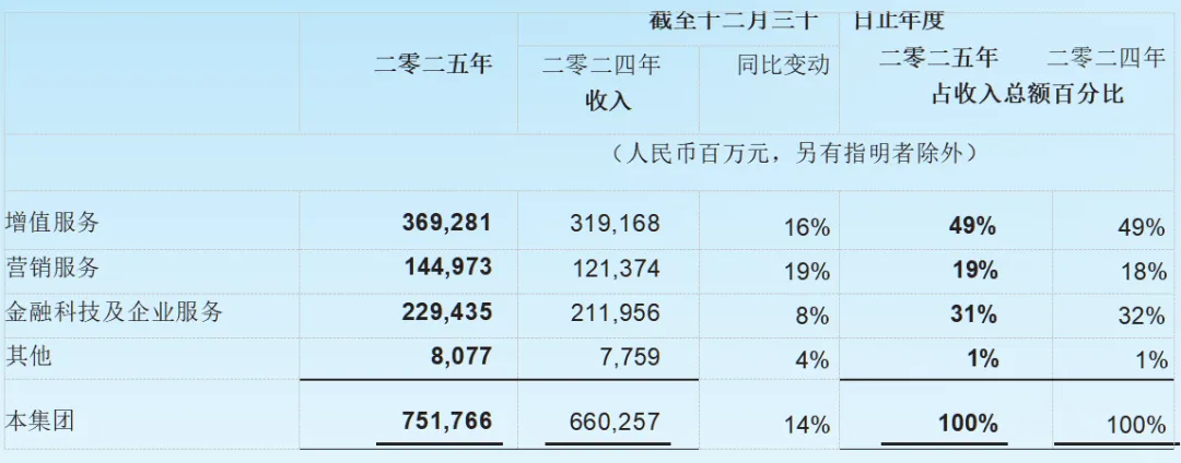 以前叫“广告业务”,2025年改名“营销服务”更贴切,因为它卖的已不只是广告位,而是精准触达用户的能力。毛利率58%,增长19%,相当强劲。