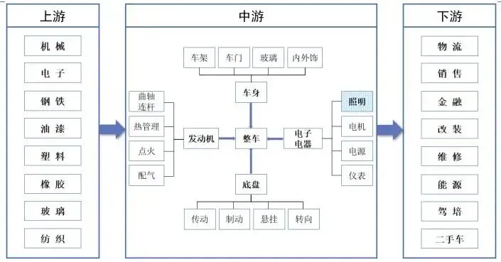 汽车车灯行业下游通常为整车制造企业,整车制造企业是汽车产业链的核心组成部分,在与汽车零部件制造企业的合作过程中,处于主导地位。