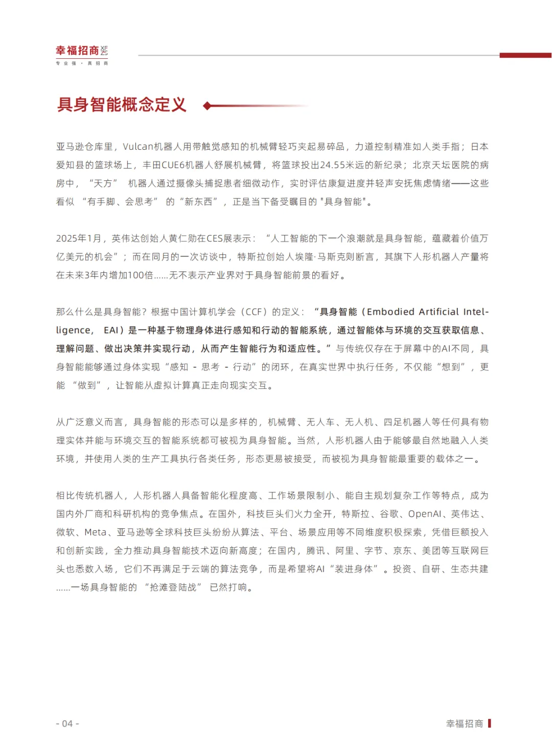 白皮书开篇即点明,我们正站在“数字大脑”与“钢铁身躯”融合的历史节点,具身智能是这场变革的核心。