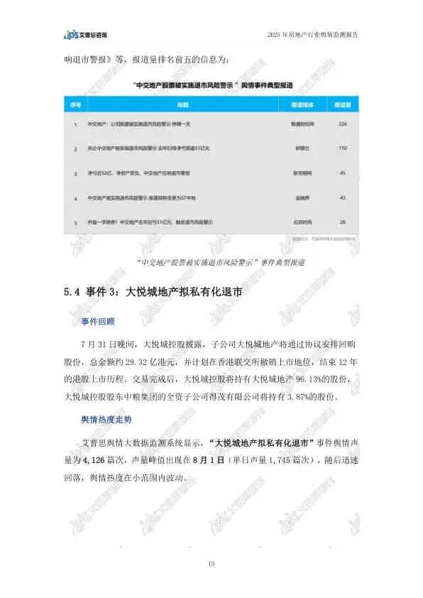 - 舆论:声量4126篇次,被视为房企应对资本市场波动的一种策略调整。