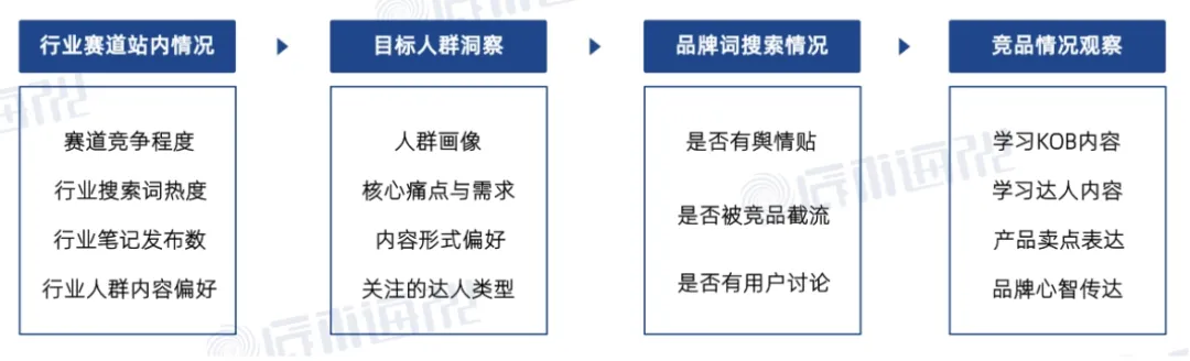 这里说的新品牌,是从来没在小红书投过的品牌。目标是摸清基础、找准差距、抓住机会。在没有历史数据的情况下,重点看4件事: