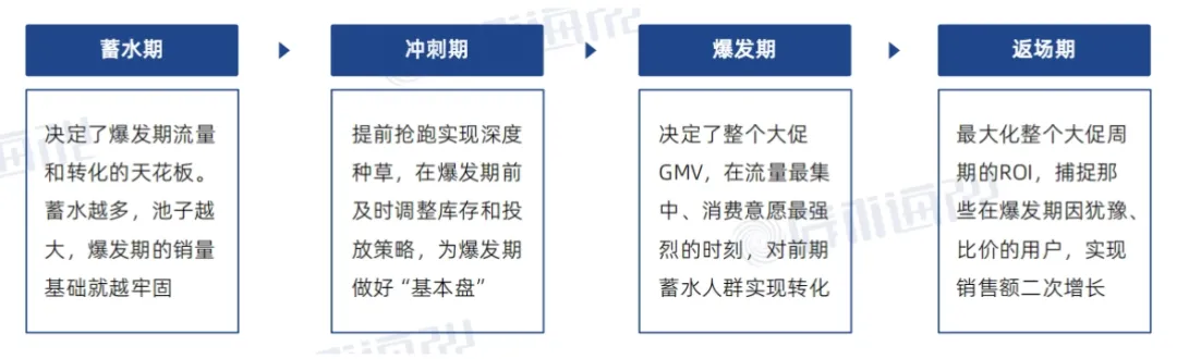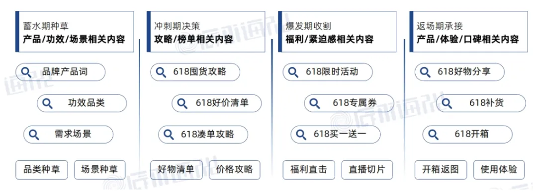 在蓄水期埋下需求的种子,完成认知种草;在冲刺期输出攻略、榜单等决策依据,加速用户加购锁单;在爆发期以强利益、高紧迫感内容推动蓄水人群即时成交;在返场期承接犹豫用户与老客复购,实现销量二次拉升。