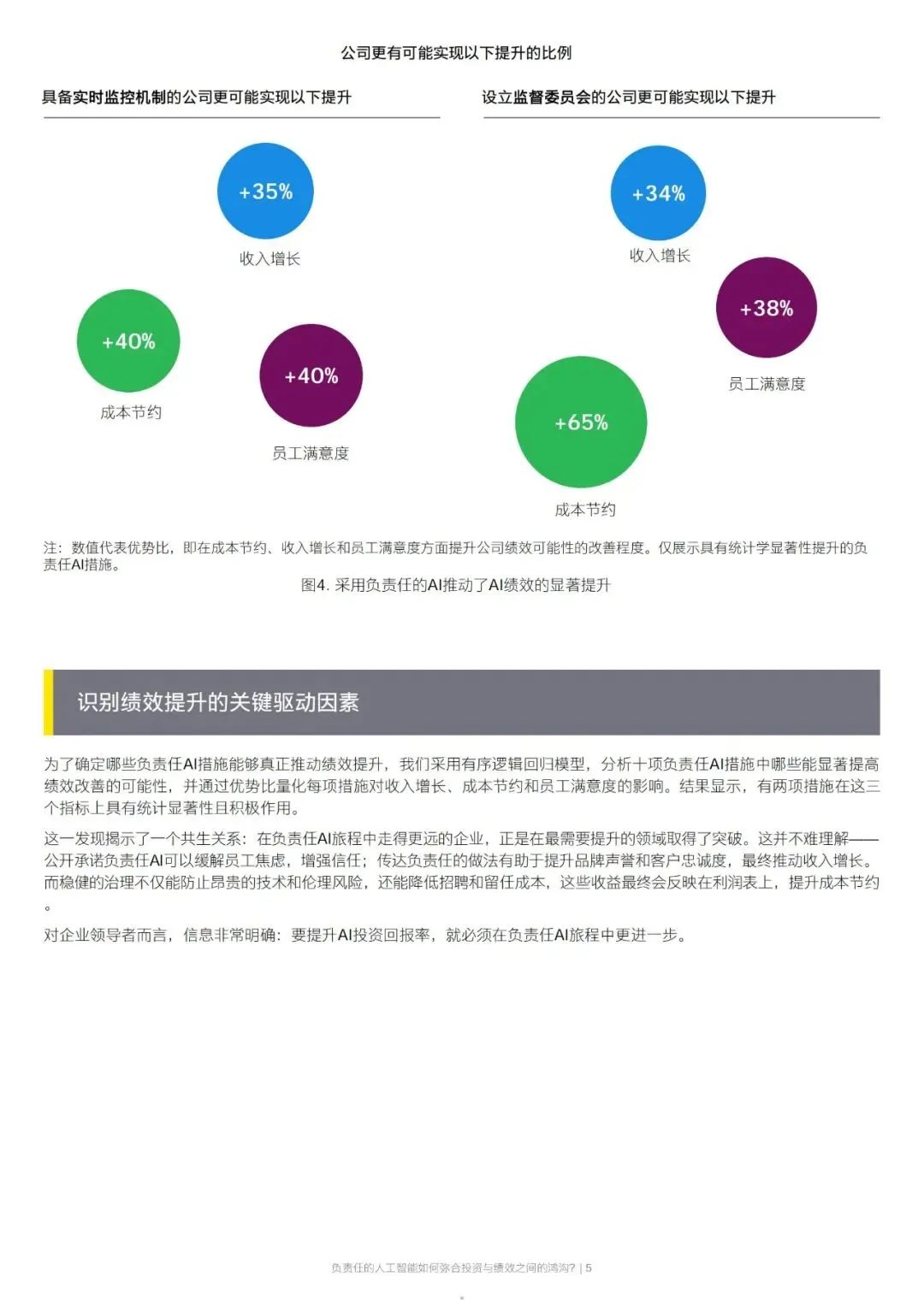 AI 确实能提升企业效率、推动创新、增强客户洞察,但在收入增长、成本节约、员工满意度三大核心指标上表现滞后。而建立实时监控、设立监督委员会等治理措施的企业,在这三项指标上的提升概率显著提高,证明负责任 AI 不是合规负担,而是驱动业绩的战略杠杆。