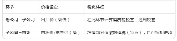 本质:利用消费税"单环节征收"的制度特性,通过组织形式创新(母生产+子销售),将利润从"重税环节"转移到"轻税环节"。