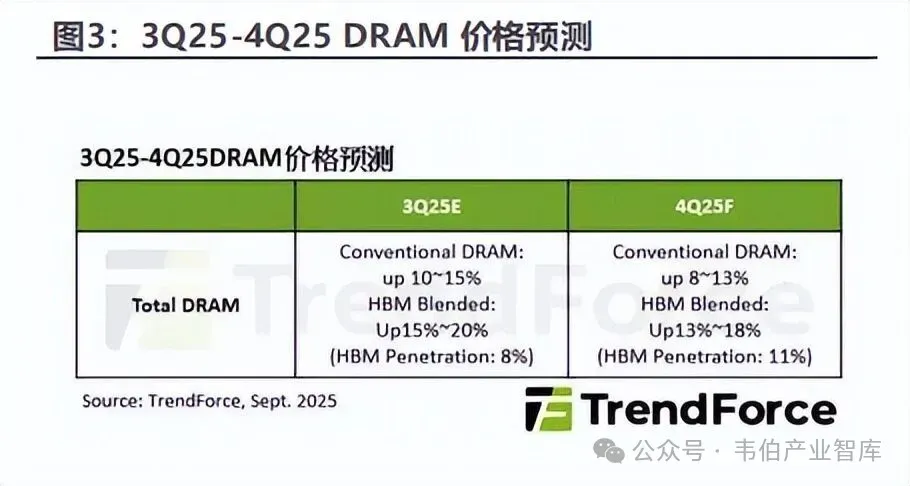 由于三大原厂持续有限分配先进制程产能给高阶服务器DRAM和HBM,挤占一般消费级DRAM产能,整体DRAM在第四季度有望继续上涨。
