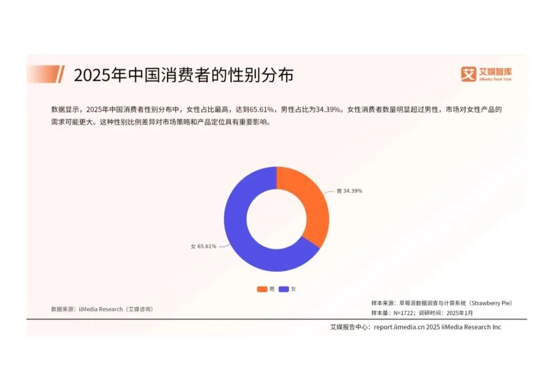 “她”主导:女性消费者占比高达65.61%,是绝对的决策与购买主力。