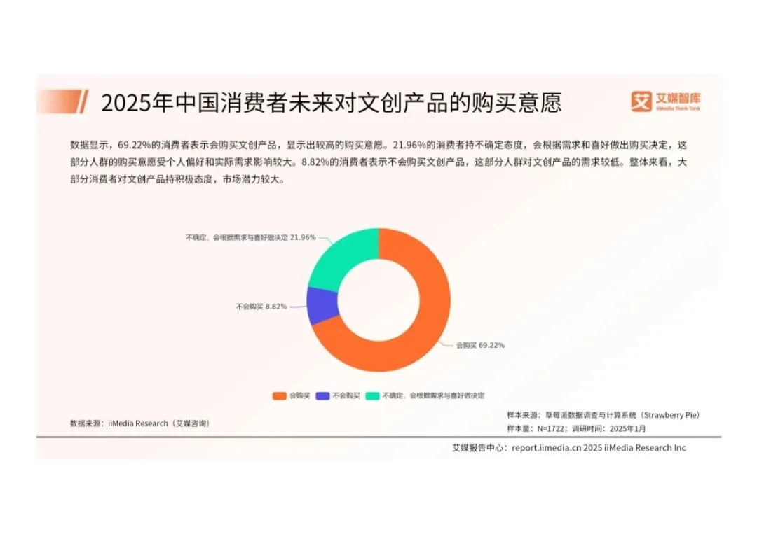 尽管存在批评,但71.24% 的消费者对文创市场发展前景持积极态度,显示出市场基本盘稳固、潜力巨大。