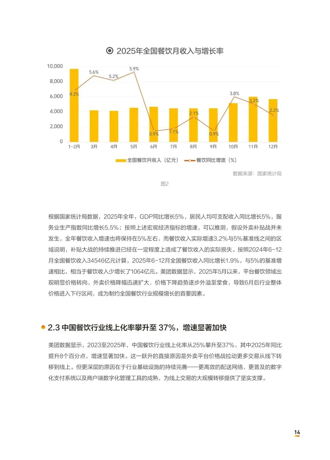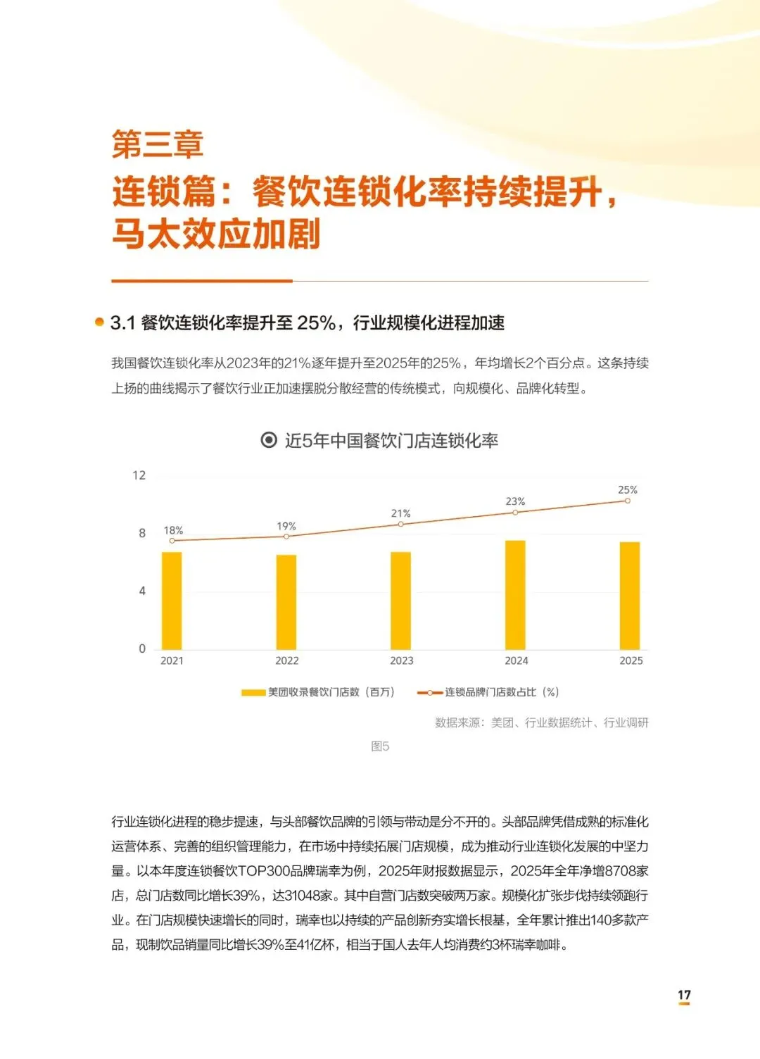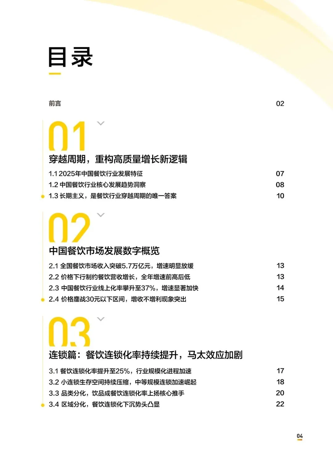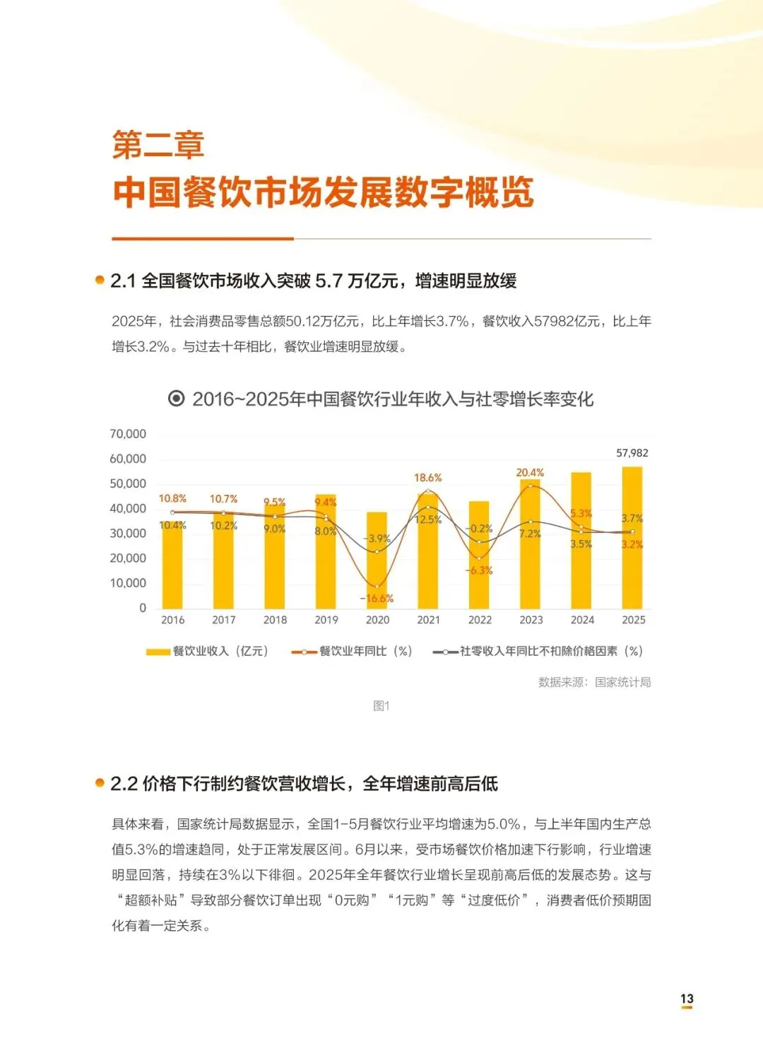 中国餐饮业正经历一场“冰火两重天”的结构性洗牌——连锁化率攀升至25%的同时,近65%的出清商户经营不足两年,活下去靠的不再是风口,而是内功。2025年餐饮收入5.8万亿元,增速降至3.2%;连锁化率提升至25%,饮品以54%领跑;但全年停业商户339万家,同比增9.4%,其中近三分之二开业不到两年。30元以下订单占近70%,交易额占比却下降,“增收不增利”成为普遍困局。