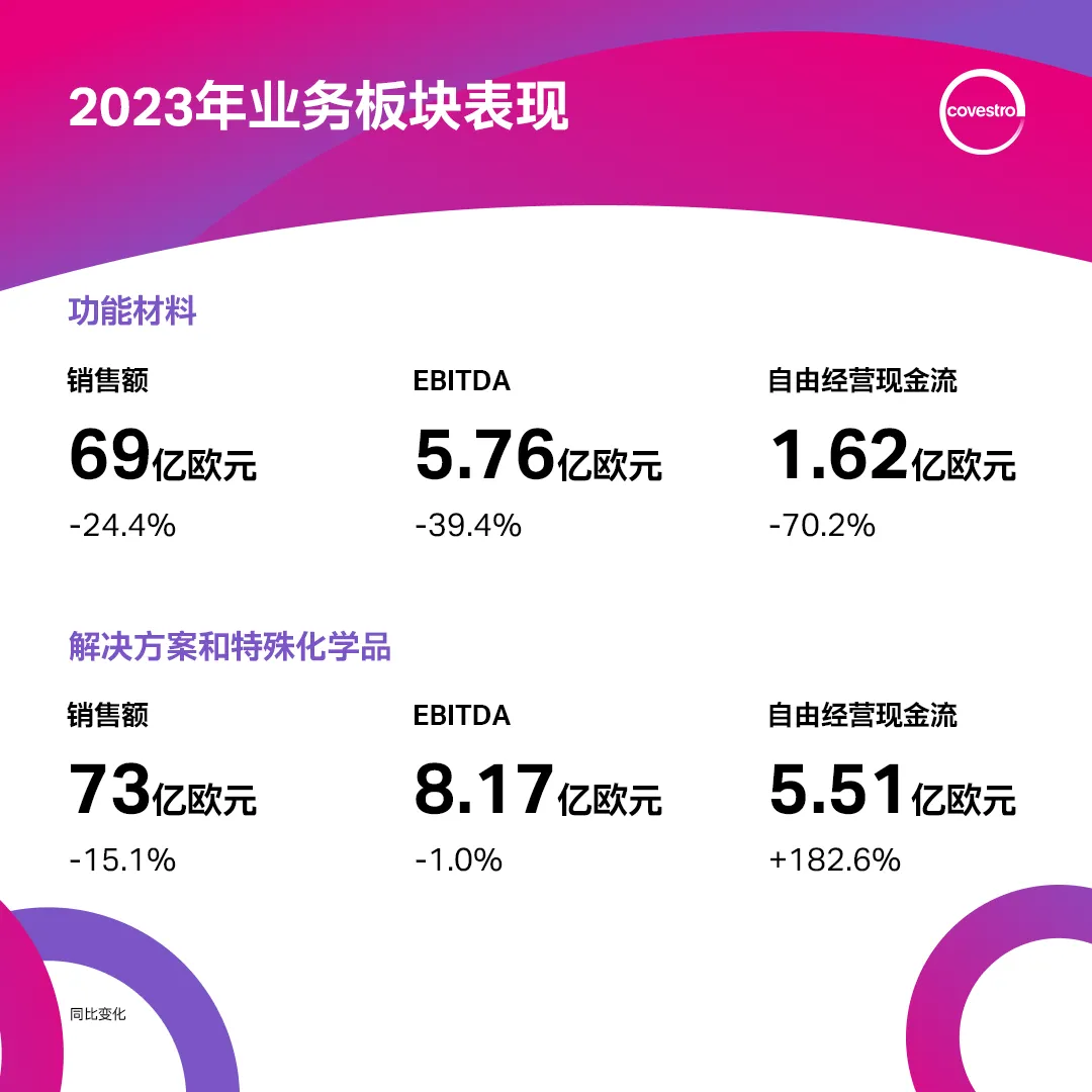 2023 财年,科思创的经营业绩再次受到充满挑战的经济环境的严重影响。地缘政治危机对全球需求和销售价格产生了持久的负面影响,同时,能源和原材料成本(尤其在欧洲)仍远高于历史平均水平。