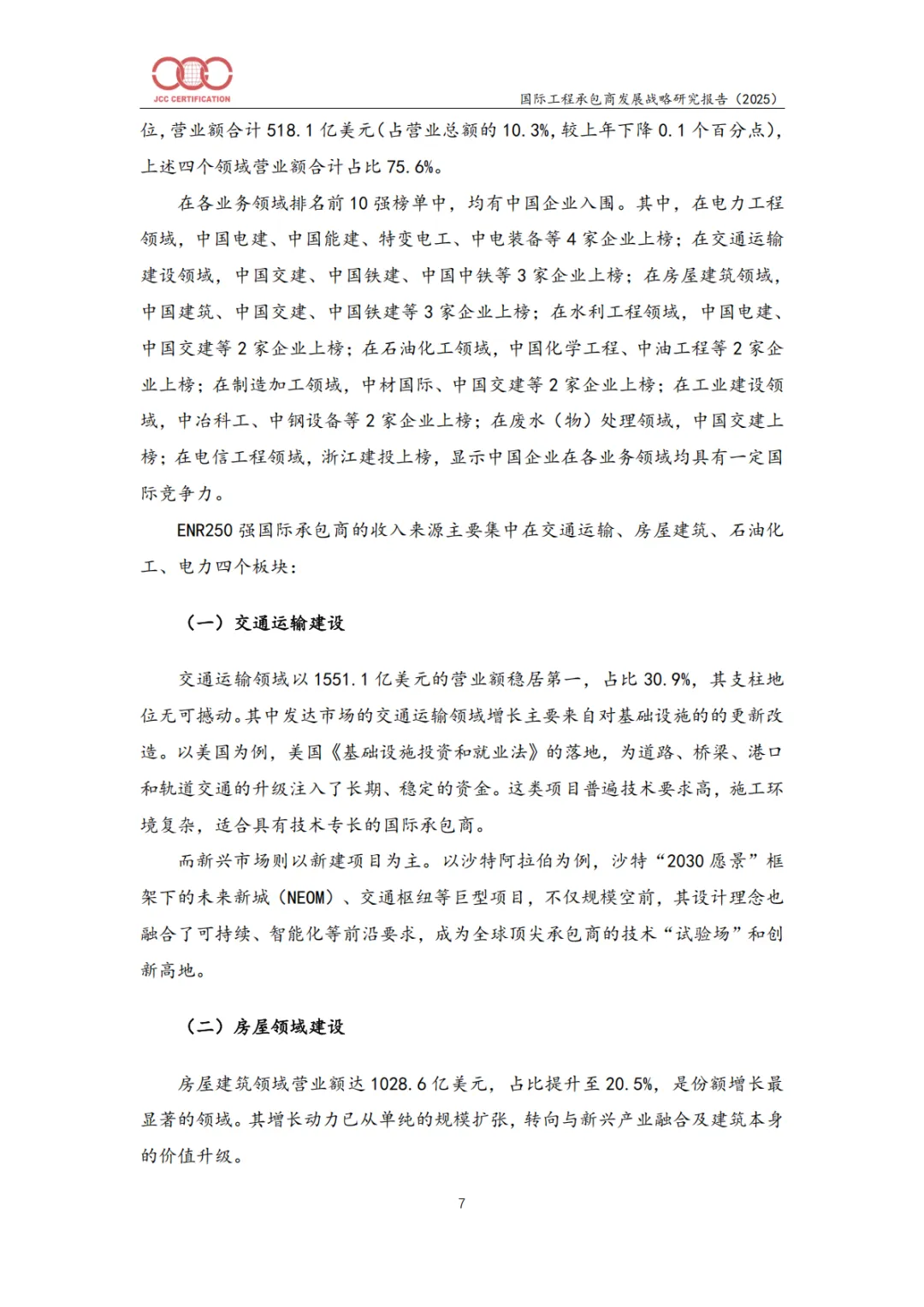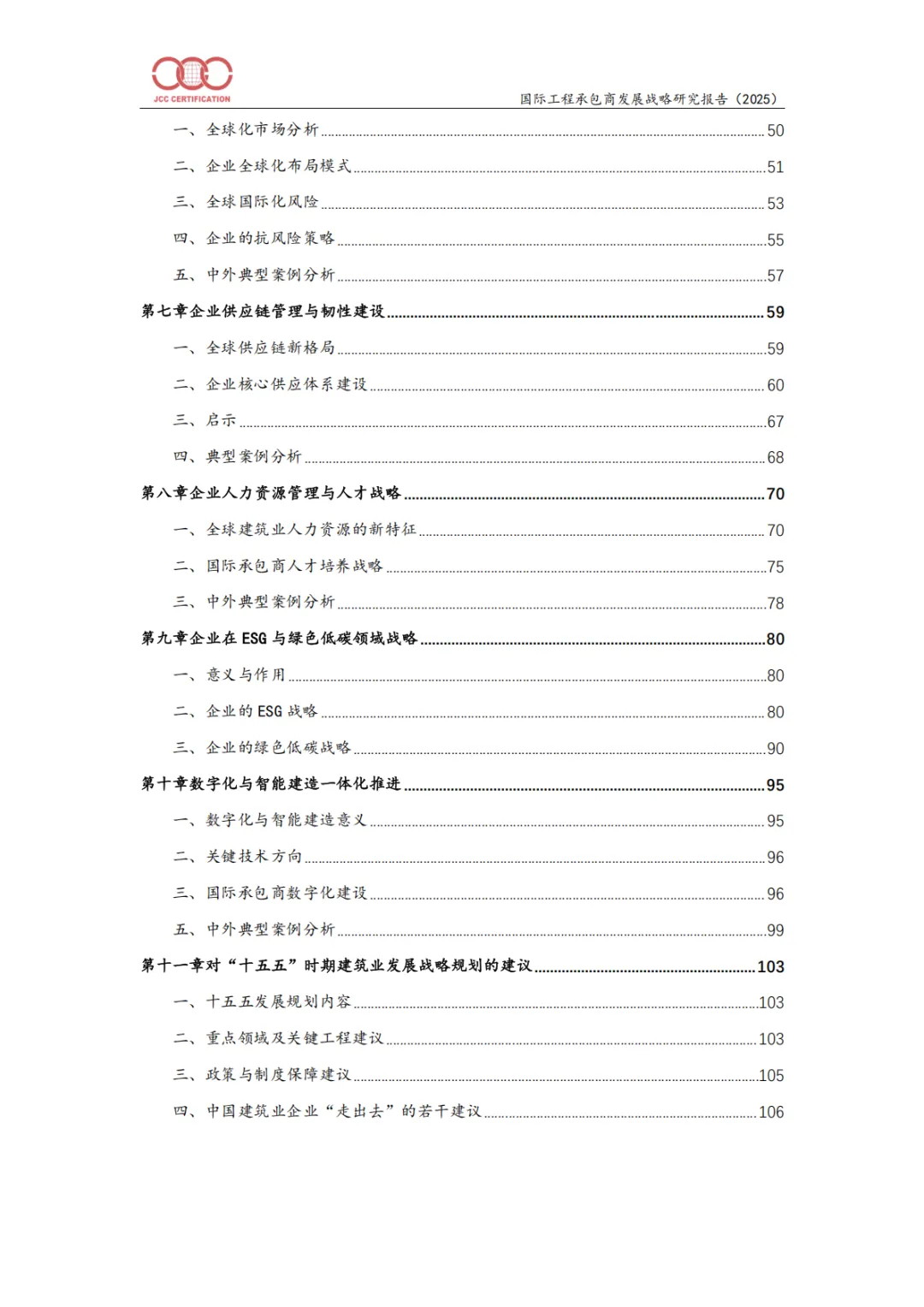 本报告系统揭示了全球工程承包行业正在经历的深刻变革:从规模驱动转向价值驱动,从施工执行转向全生命周期服务,从高碳粗放转向绿色智能。中国企业应借鉴ENR 250强企业的战略路径,在“十五五”时期加快技术、模式、管理、人才、合规等全方位升级,构建具有全球竞争力的现代建筑业体系。