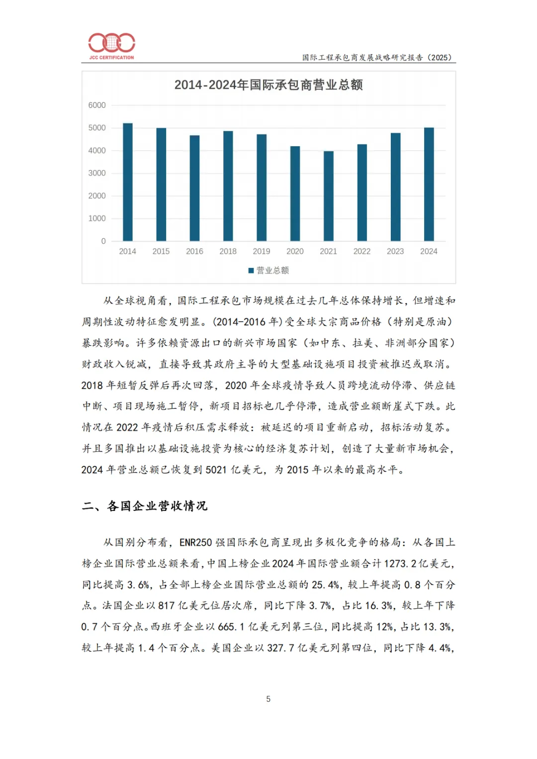 国际营业总额:5021亿美元(同比+0.5%);新签合同总额:7273亿美元(同比+7.5%)。