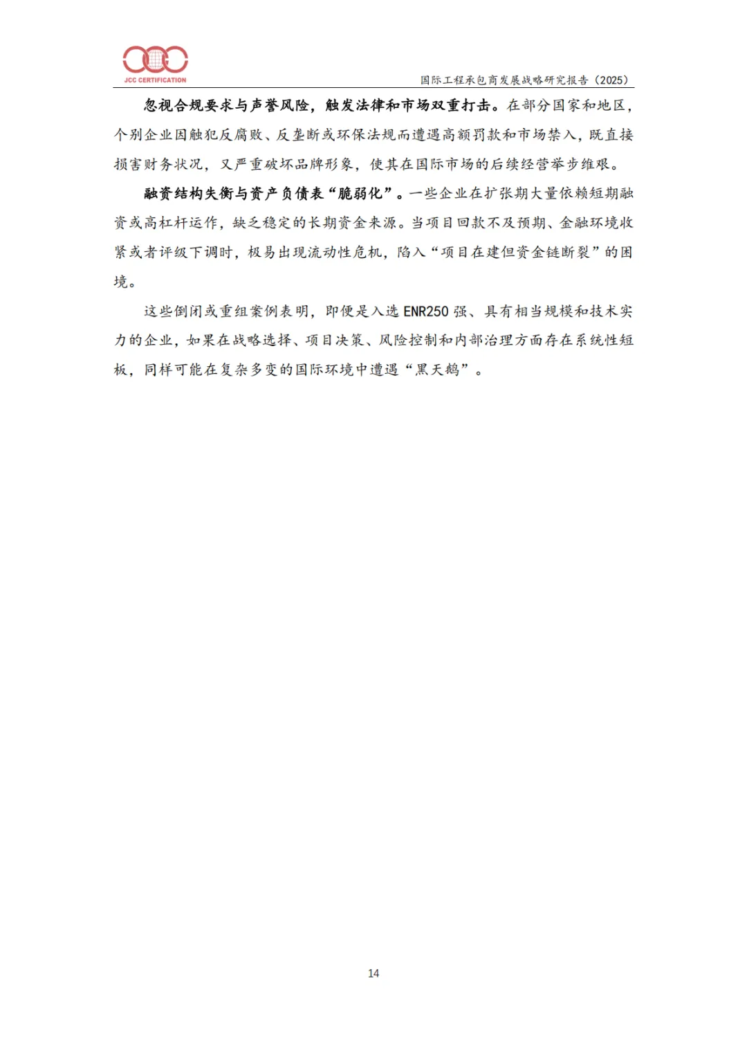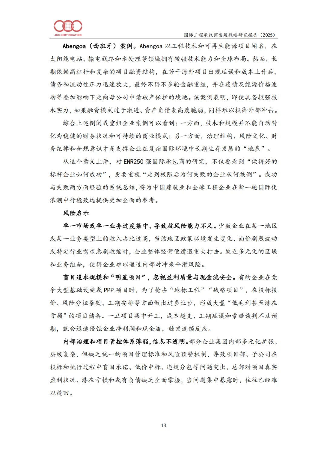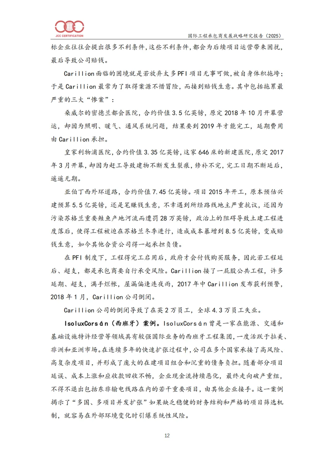 英国Carillion、西班牙Isolux Corsán、Abengoa等企业因过度扩张、项目风险控制失效、财务结构脆弱、合规缺失等破产或重组。