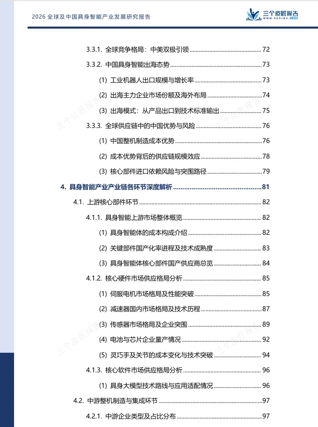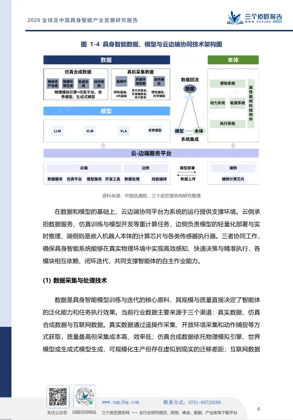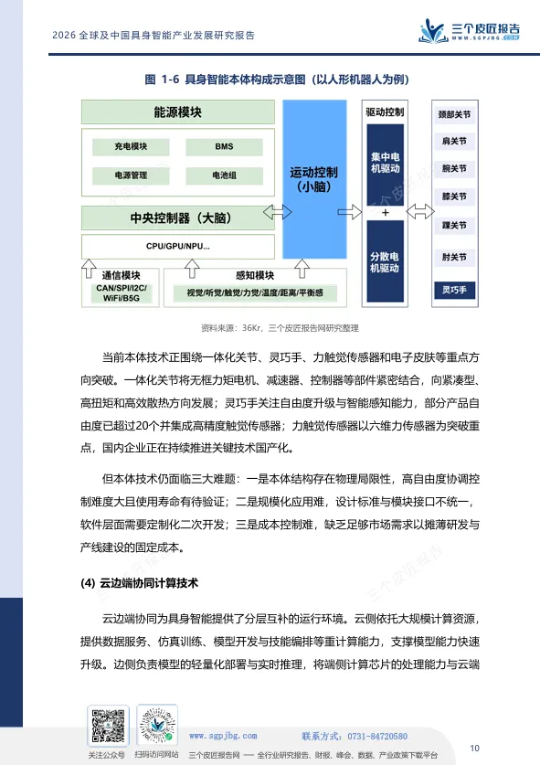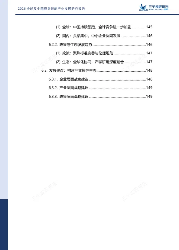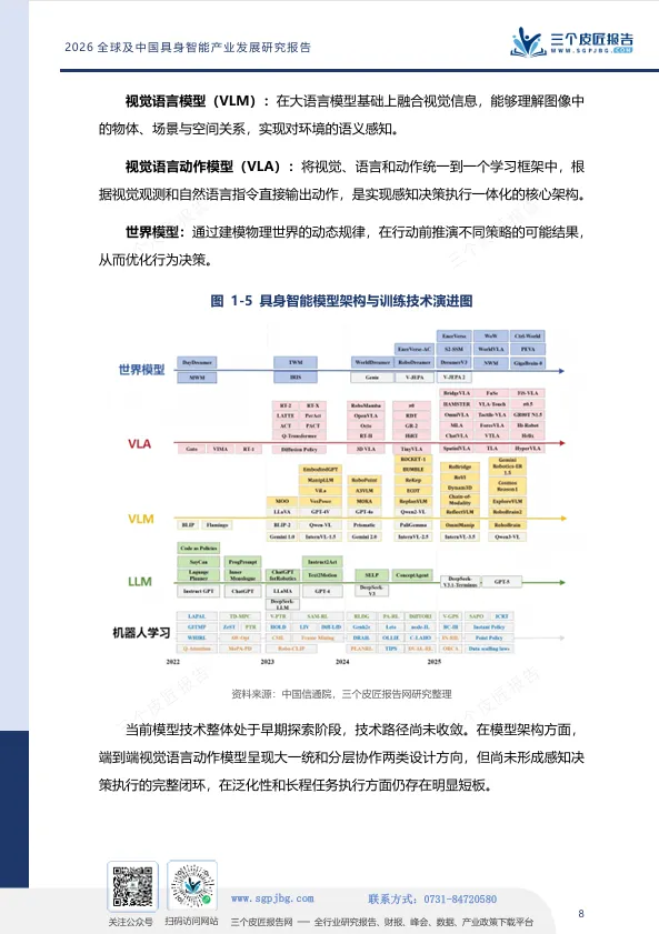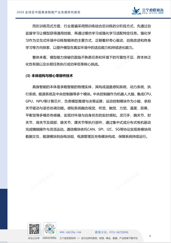 报告给出的判断是:中国具身智能产业已跻身全球第一梯队,但真正的胜负手在于能否在“智能内核”上实现从追赶到引领的跨越。世界模型的突破、训练场的数据供给、核心零部件的自主化,将是未来三年决定产业格局的关键变量。