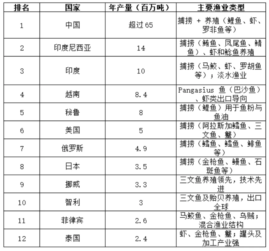 数据来源:联合国粮农组织(FAO)发布的2024版《世界渔业和水产养殖状况》