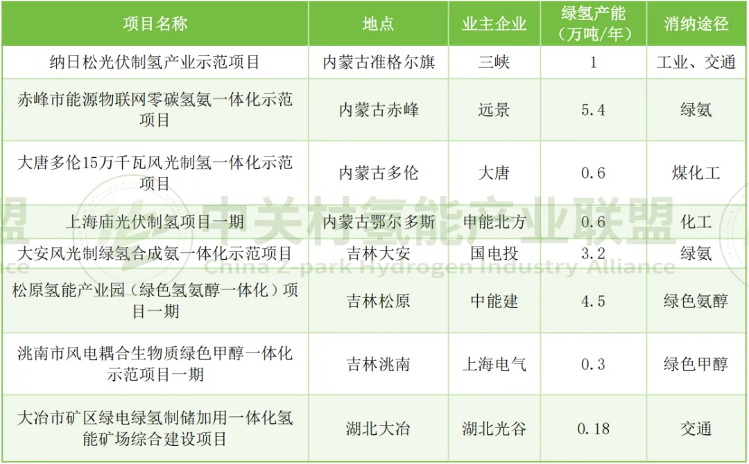 表1 我国2025年部分投产绿氢项目