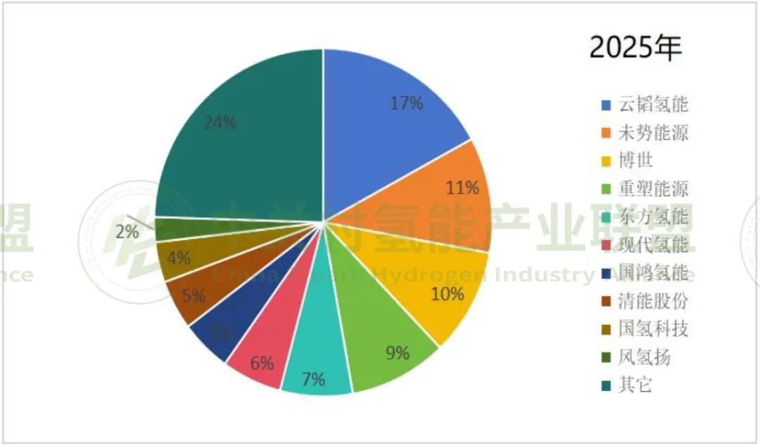 图3 2025年燃料电池系统企业装机量市场占比